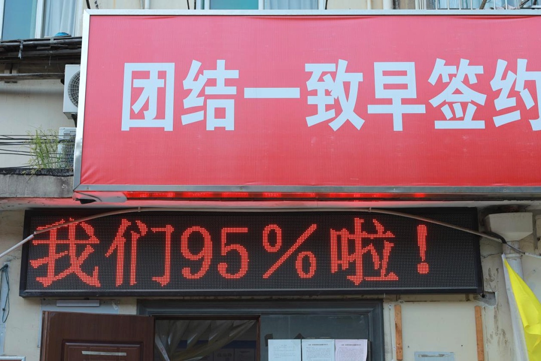 8月25日下午,随着住在52号的陆伯伯在协议上郑重签下自己的名字,控江路街道凤南一村旧住房拆除重建项目在预签约第12天实现1794户居民签约率95%,现场响起一阵热烈的欢呼声。