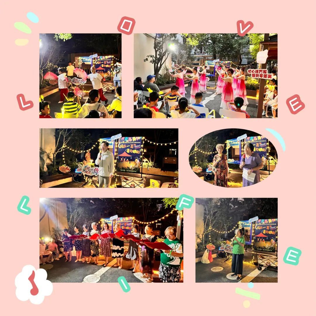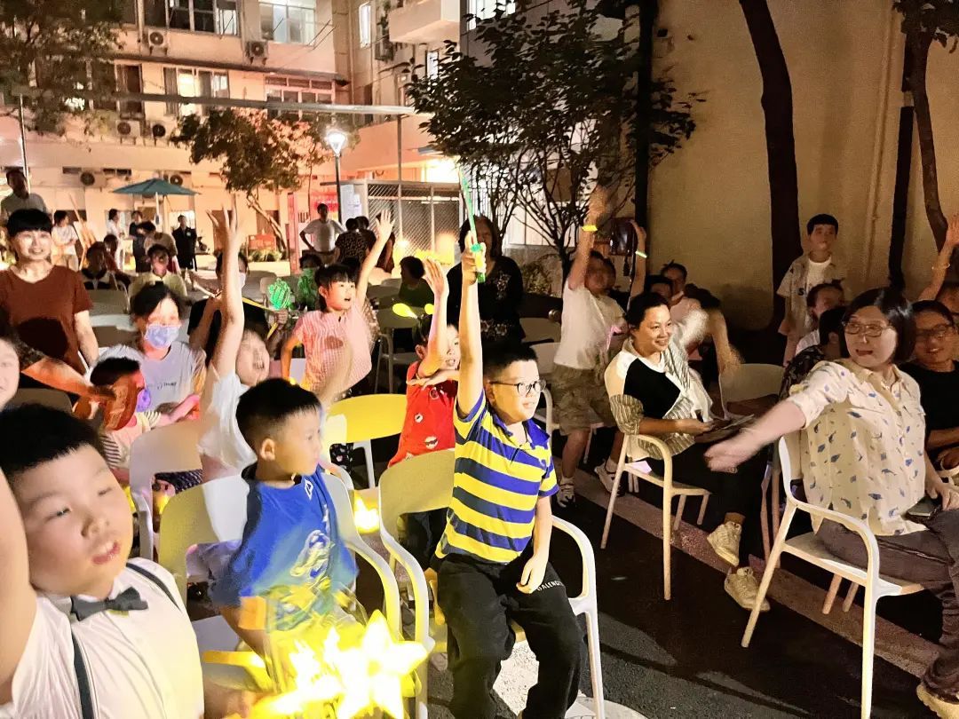 社区拳操队的一曲木兰扇张弛有度,暑期成长营小当家的民族舞活力四射,大家挥舞着手中的灯牌,欢乐的气氛在不断蔓延。