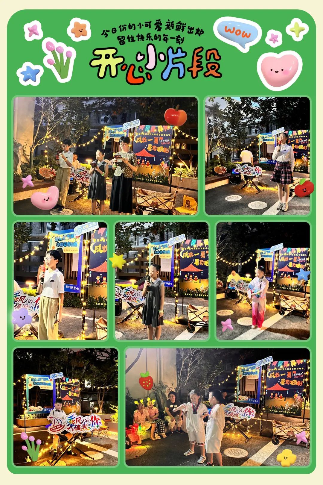 如意小当家有话说。活动伊始,每位小当家写下对未来的美好祝愿以及对成长营的建议把满满的期许与祝福镶嵌在寄语墙上。晚风微拂,笑语欢歌!随着社区文化中心舞蹈队的曼妙舞姿和小北一起去现场感受仲夏夜的奇妙氛围。
