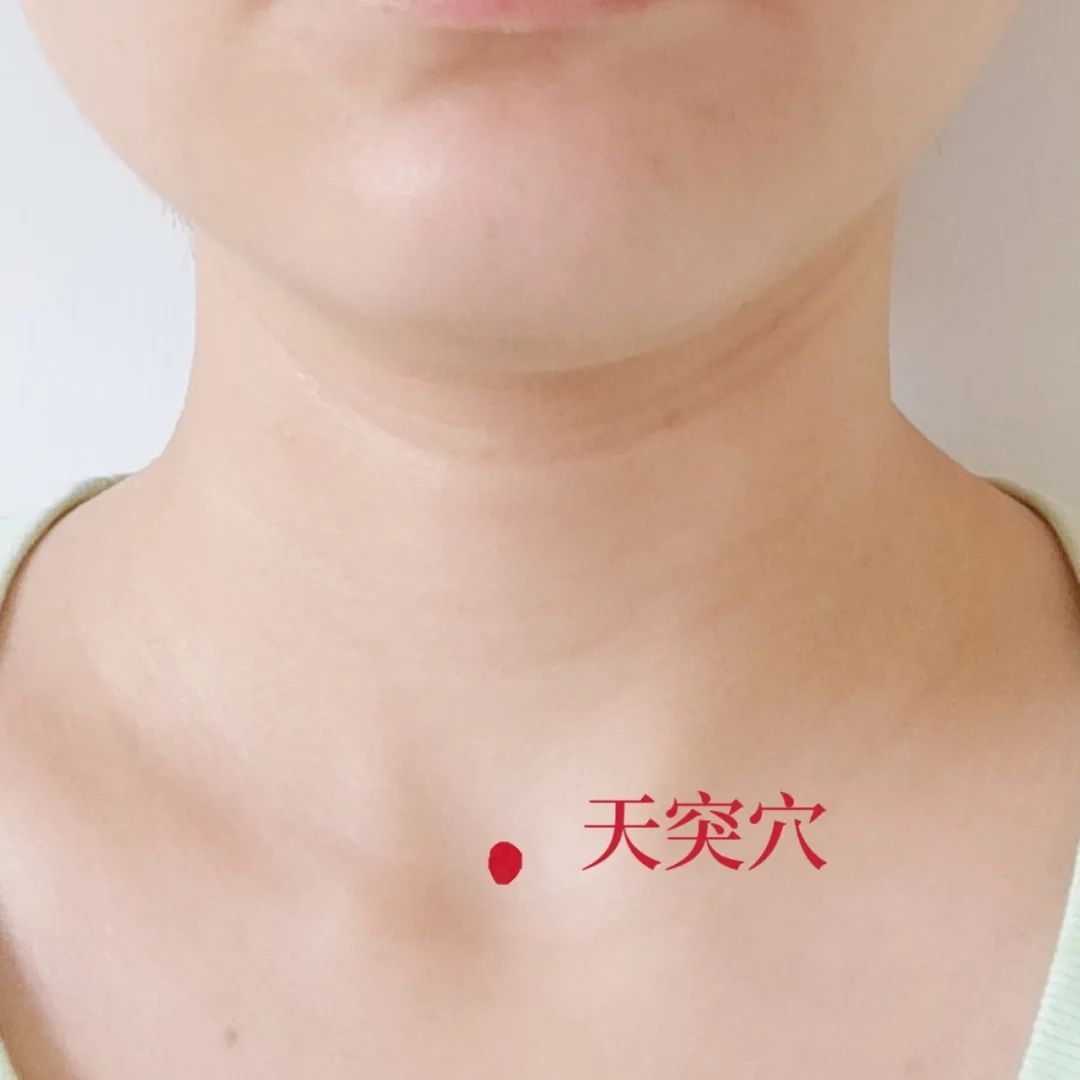天突穴位于颈前,胸骨上窝中央,正好在咽喉和气管的前面,是任脉的穴位。