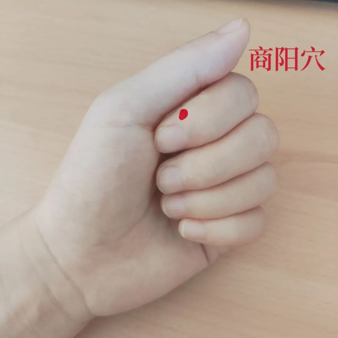 商阳穴属手阳明大肠经,位于食指末节桡侧,距指甲角0.1寸。