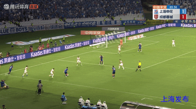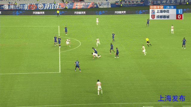 艾克森倒地反抢拼得球权,安德里戈兜射弹楣入网,成都1-1申花