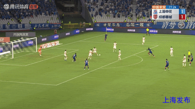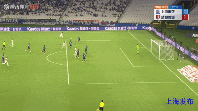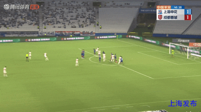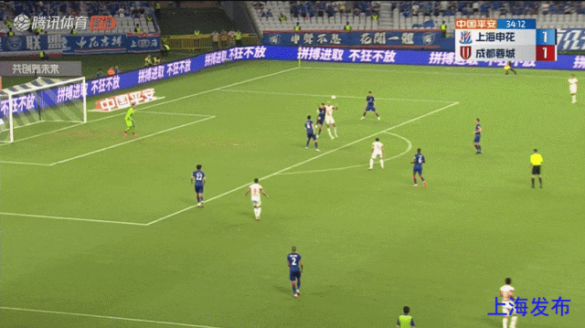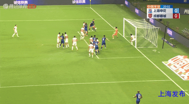 朱辰杰头球弹地送到门前,蒋圣龙头球破门!申花1-0成都