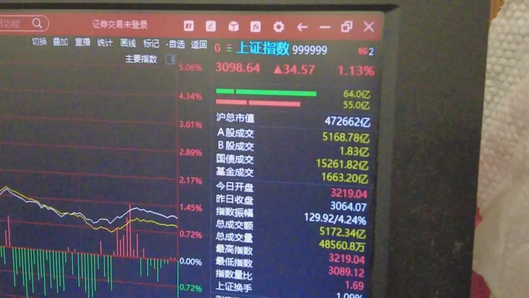 8月27日A股超预期重磅利好齐上阵,降低印花税、收紧 IPO、严控减持、融资加杠杆“四箭齐发 ”,刺激周一(8月28日)市场开盘大涨,沪指高开超 5% 直上 3200 点。A股市场三大指数全线大幅高开。上证指数开盘上涨5.06%,站上3200点,深证成指开盘上涨5.77%,创业板指开盘上涨6.96%。