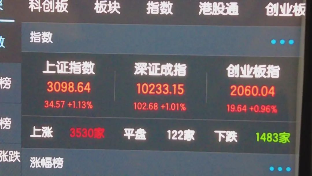 A股高开低走,沪指开盘涨逾5%,收盘涨1.13%;深证成指开盘涨近6%,收盘涨1.01%;创业板指开盘涨近7%,收盘涨0.96%。成交超1.1万亿,北向资金净卖出逾80亿。行业板块多数收涨,房地产开发、房地产服务、煤炭行业、装修建材、工程咨询服务、证券板块涨幅居前;仅通信服务、贵金属、酿酒行业、软件开发、互联网服务、生物制品板块下跌。