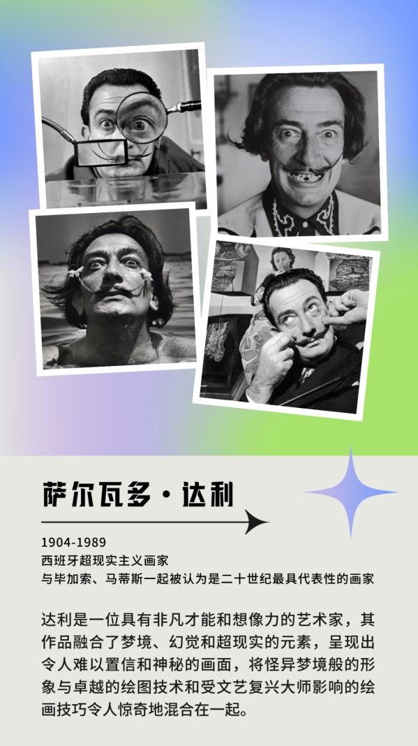 本次展览由八个单元组成,分别是:“走进达利”“记录达利”“AI达利:虚无与永恒”“探梦达利”“达利岁月”“穿越达利”“再创达利”“我的超现实:人人都是达利”。