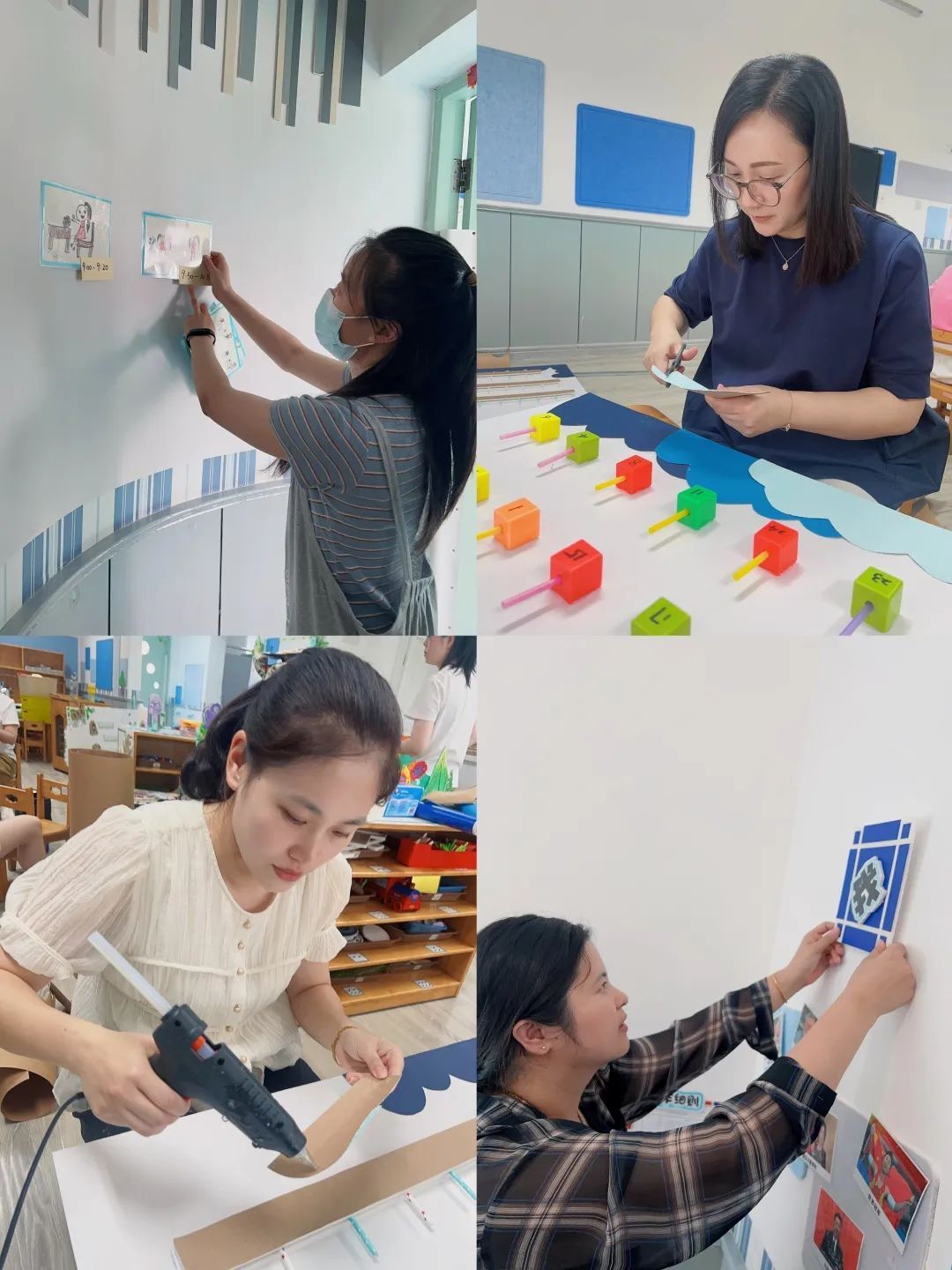 奉贤区海贝幼儿园的教师们积极开展环境以及专用室布置、教具的清洁消毒工作,为新学期教学保驾护航。幼儿园组织全体教职员工开展业务、师德师风培训,坚持以“让每一个小贝壳快乐成长”为理念,迎接孩子们的到来。