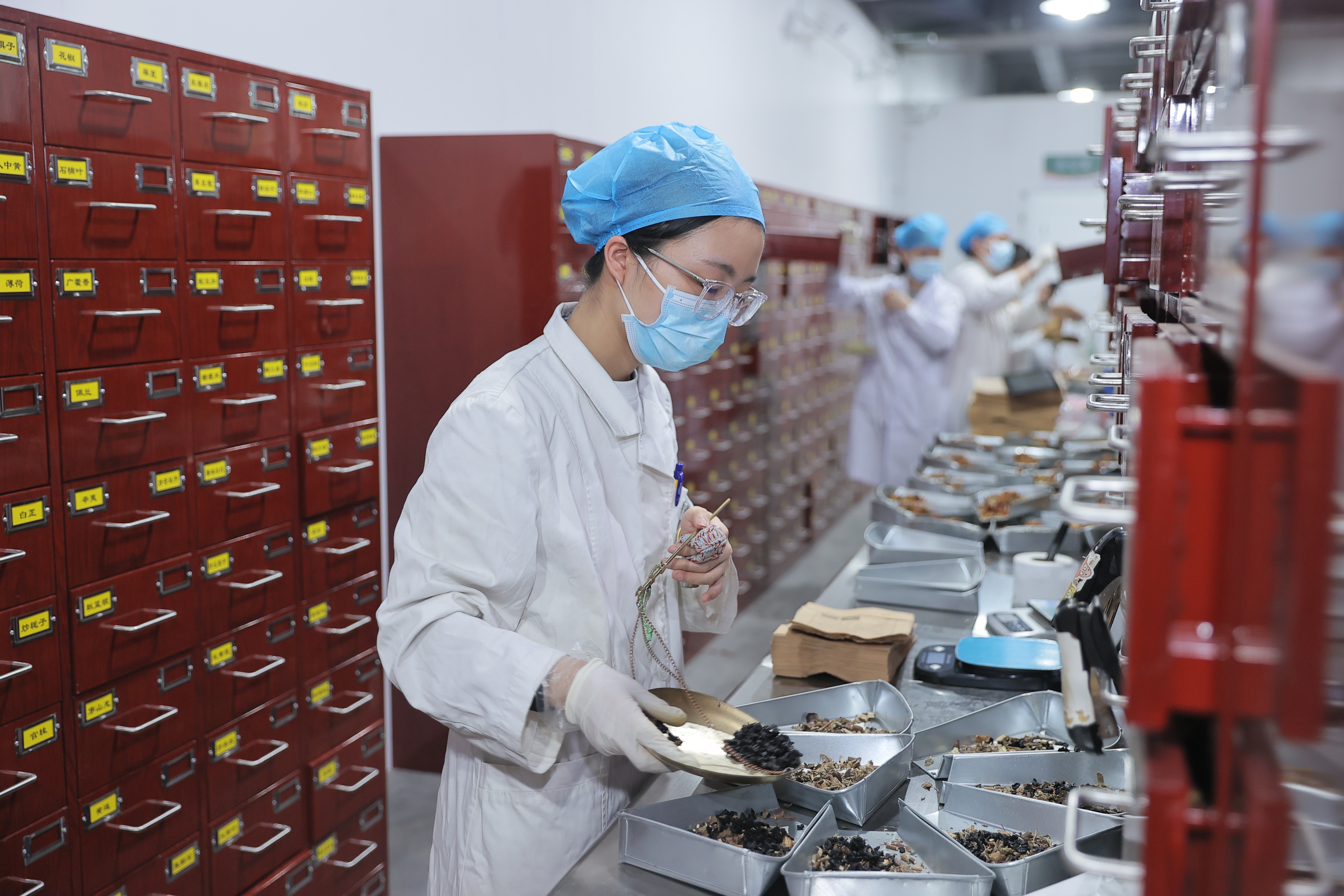 为保证共享中药房的药品与医院本部的同质化管理,医院每天从牛首山院区中药仓储中心将中药饮片送达共享快递中药房,约20名省中医院中药调剂药师和5名邮政员工进驻快递中药房,处方通过信息化系统线上流转,实现接单、配药、包装、运输的全流程流水作业。目前该共享快递中药房的服务,减少了门诊患者排队取药压力,大大提升了就诊便捷度。