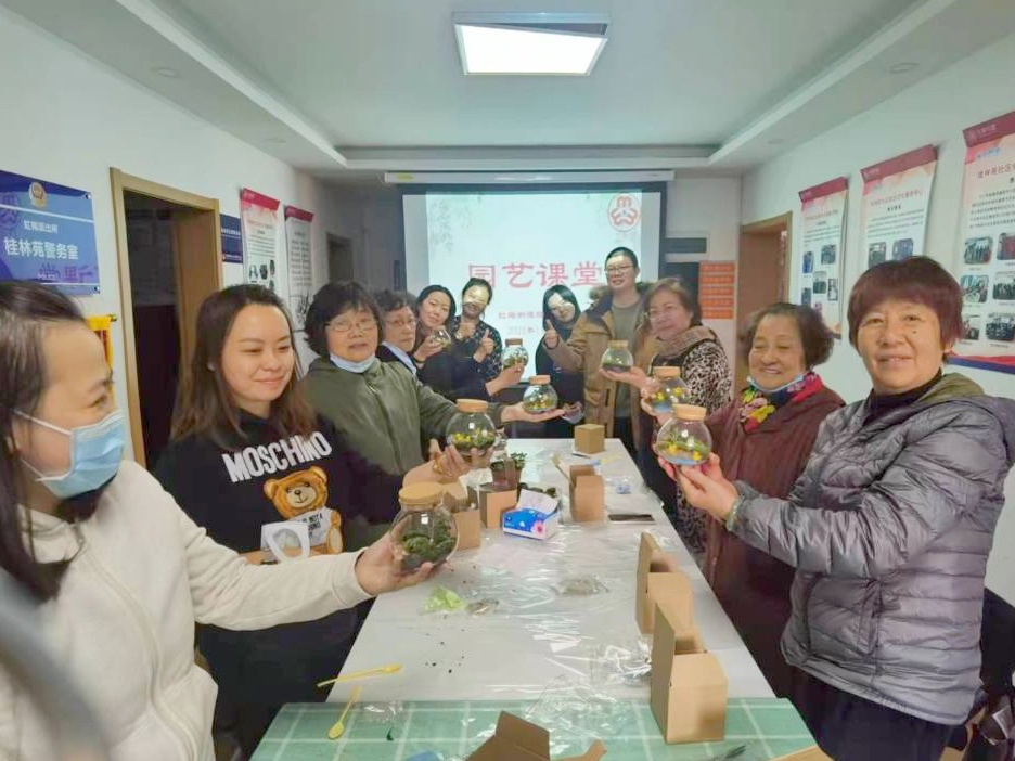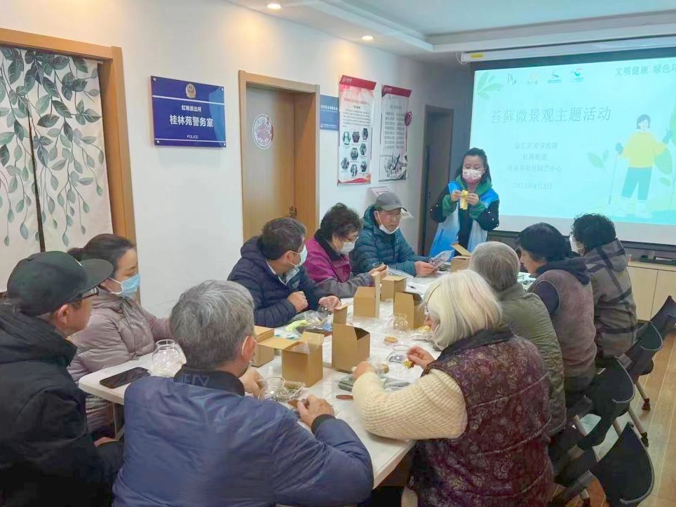 桂林苑市民园艺中心持续开展了各类园艺活动,如“小手牵大手”绿植认养活动、“插花的艺术之旅”课堂、微景观DIY创作活动等。
