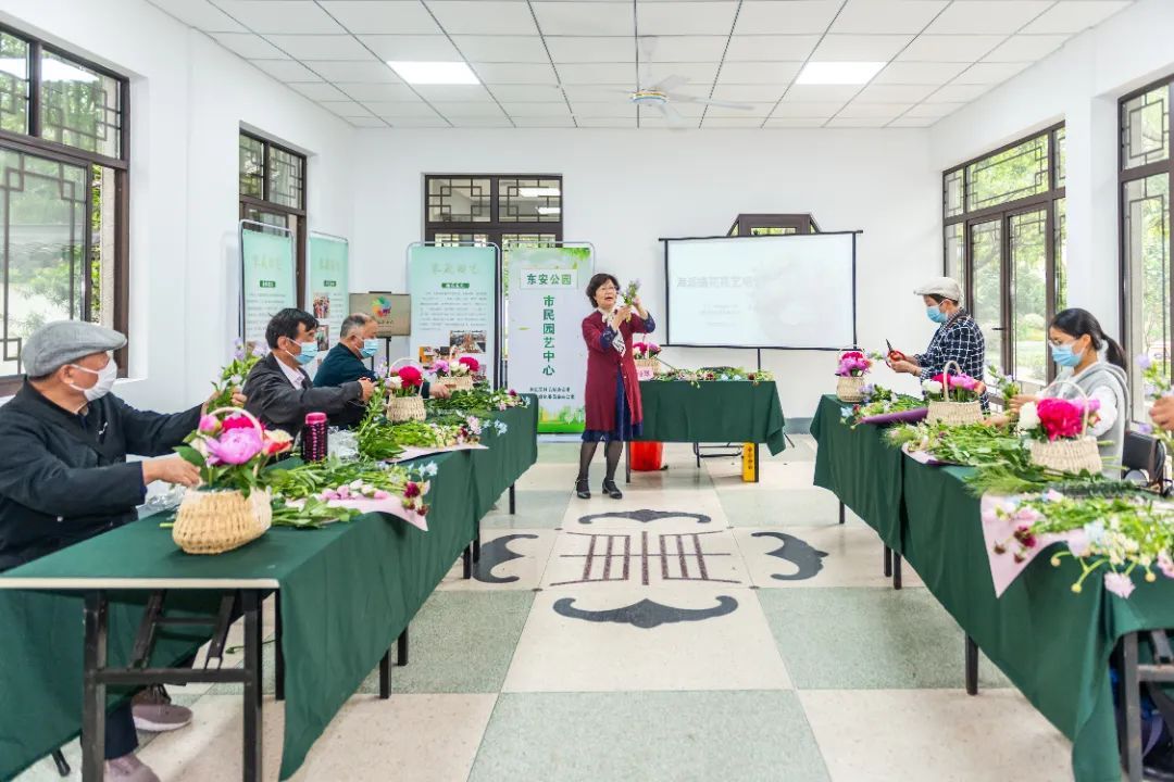 园艺中心揭牌以来,开展了一系列主题活动,如以“园艺进家庭,绿化美生活”为主题的海派插花花艺培训活动,特邀上海市插花协会副秘书长、上海市插花学校顾问杨绿翠老师为大家做插花花艺培训。