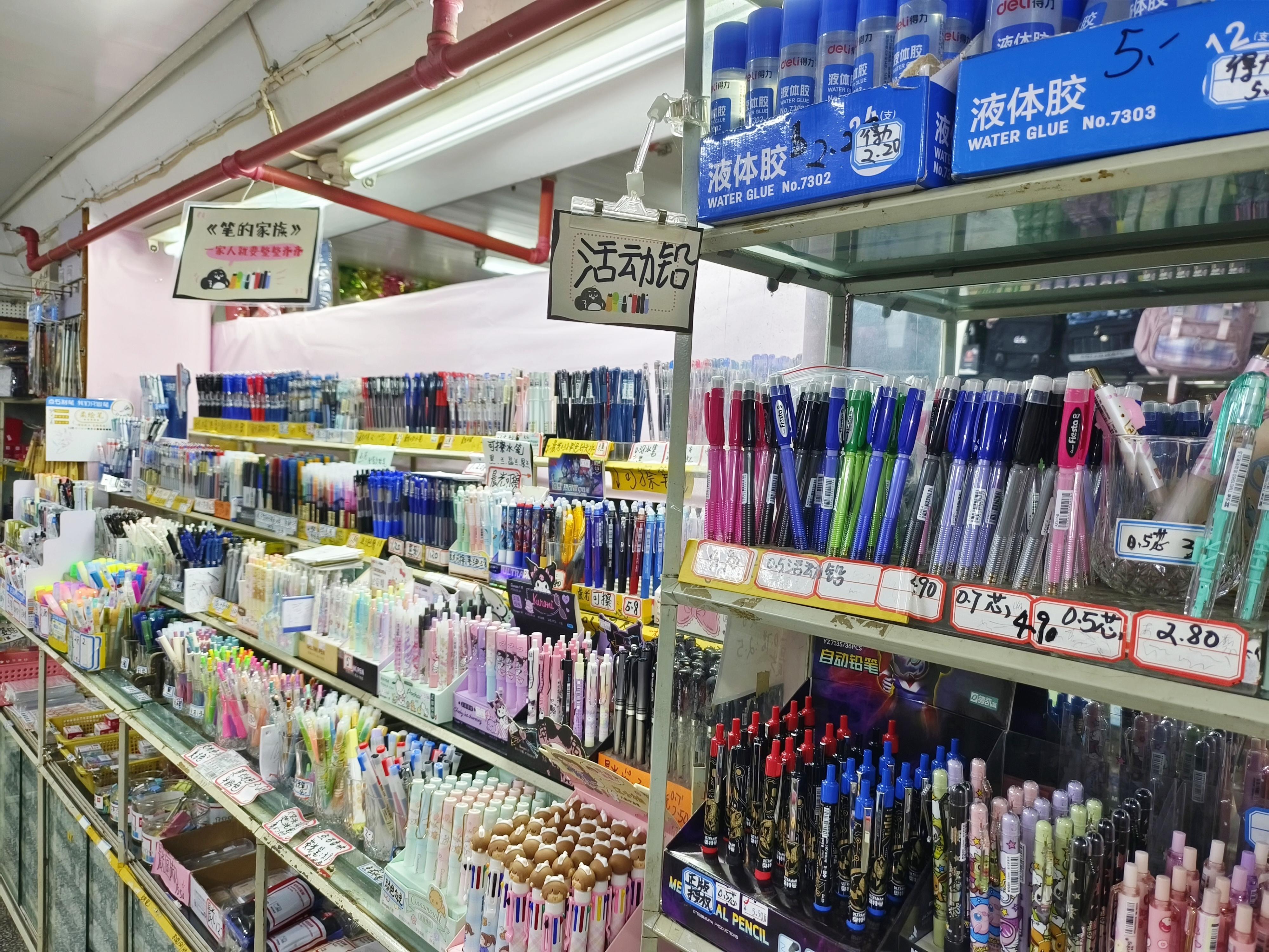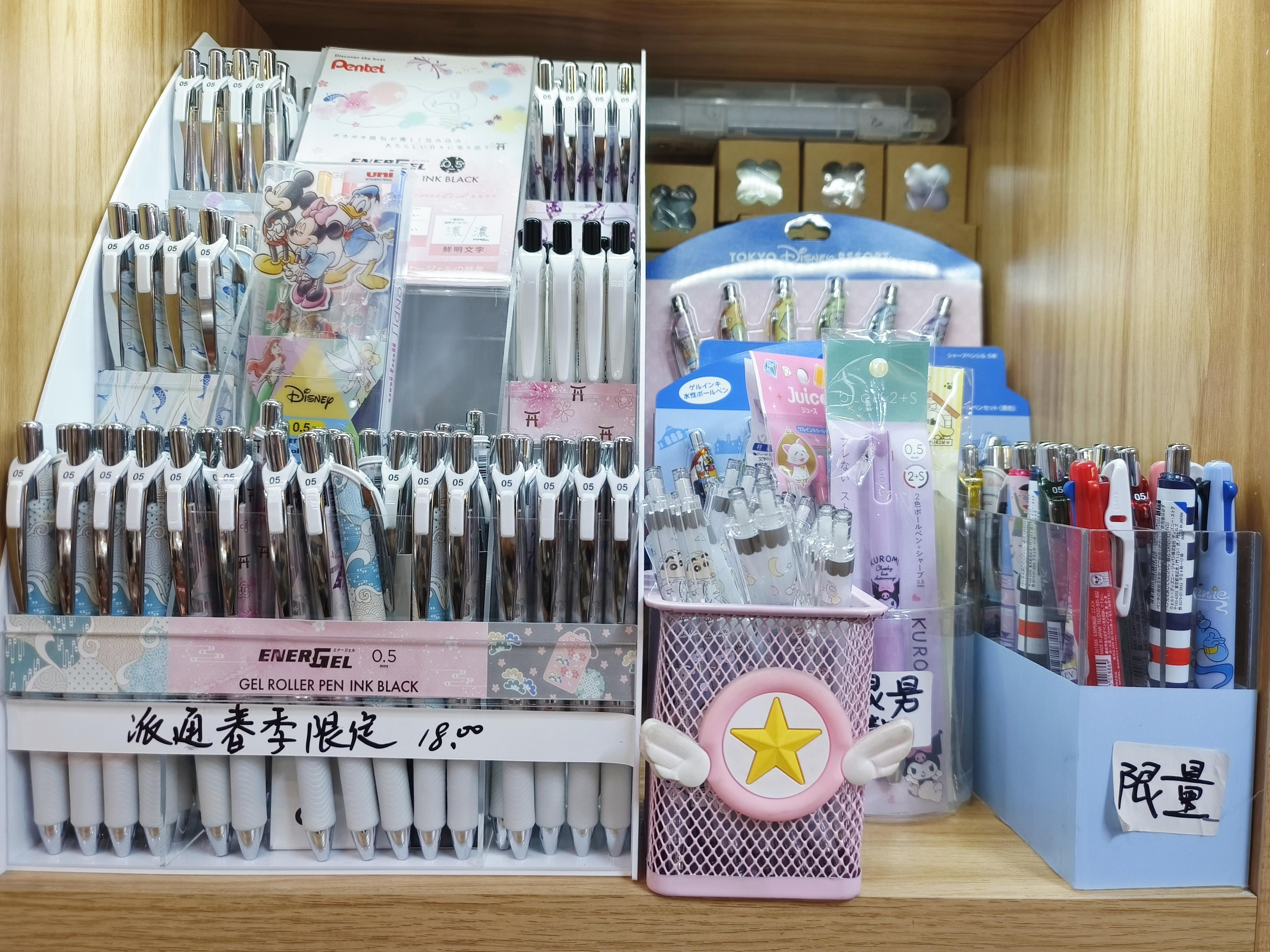 建国东路的一家文具店里,顾客络绎不绝。在店中最显眼的位置,不同式样、各种颜色的中性笔,摆了满满一架子。其中还有些季节限定版的限量水笔,图案精美且别致。各个年龄段的顾客都会在笔类货架前停留,被美观又实用的中性笔吸引。“笔么,总归用得到的。”顾客许小姐说,“自己也要用,孩子也要用。”