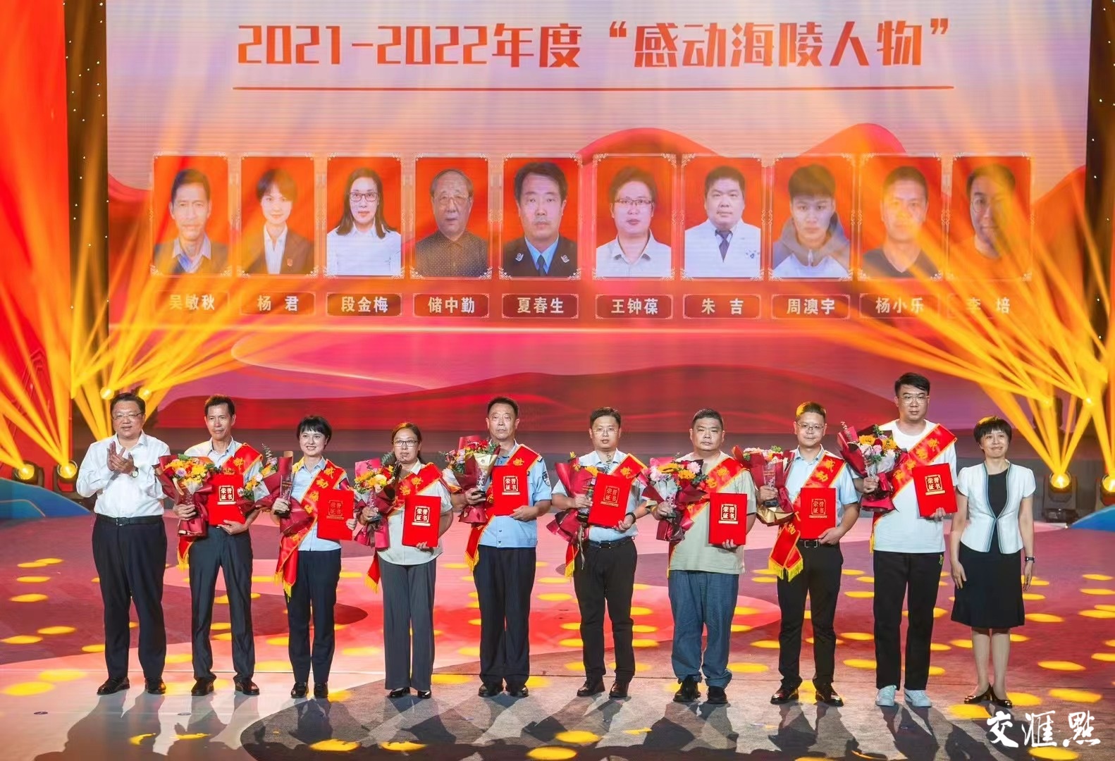 图为“海陵好人节”活动现场,年度典型人物接受表彰。