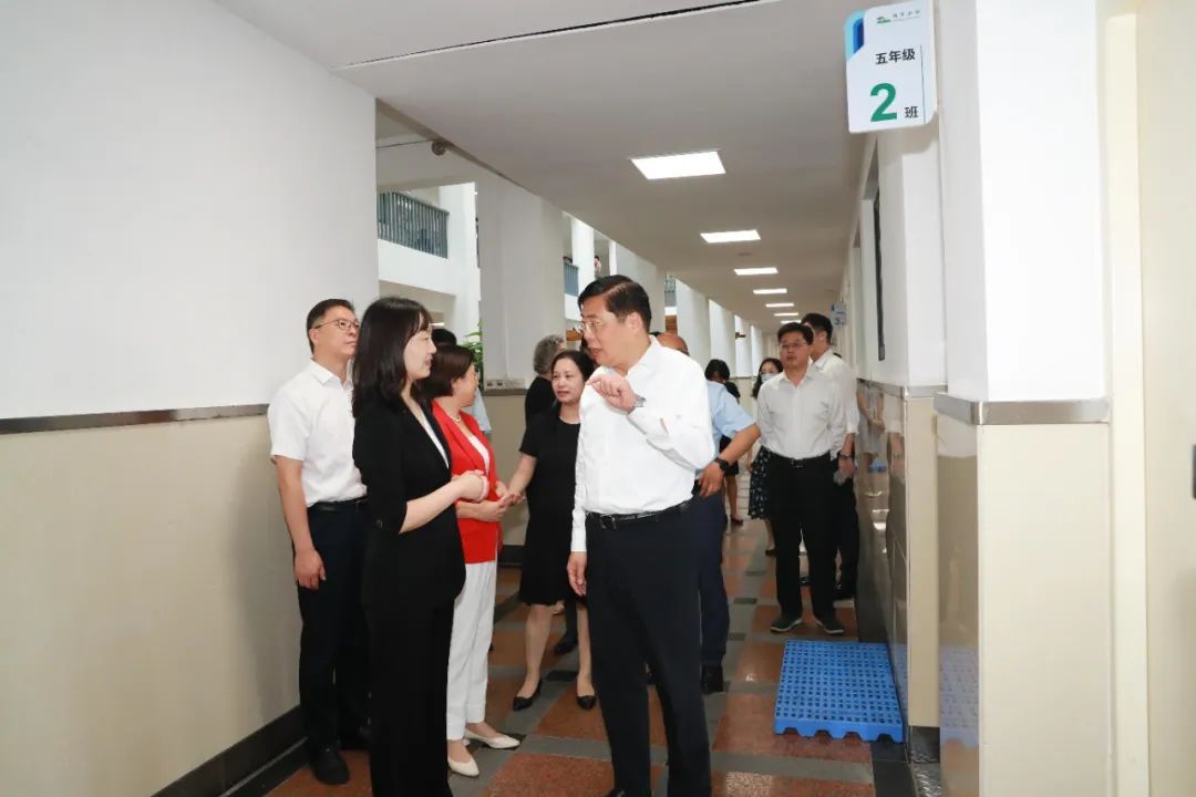 近年来,学校对口地段入学人数增多,现有校舍无法满足入学需求。在各方协调下,海华小学借用卢湾高级中学校舍设立办学点。新学期,五年级学生将在卢湾高级中学的校园内学习、生活。调研中,杲云察看了卢高教学点的教学环境,听取开学工作情况介绍,要求教育部门和有关学校做好指导协调对接工作,确保教育教学安全有序开展,让更多学生能够就读家门口的好学校。