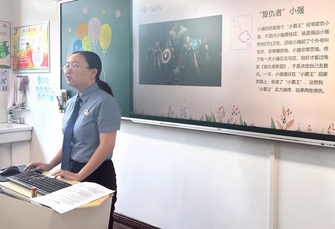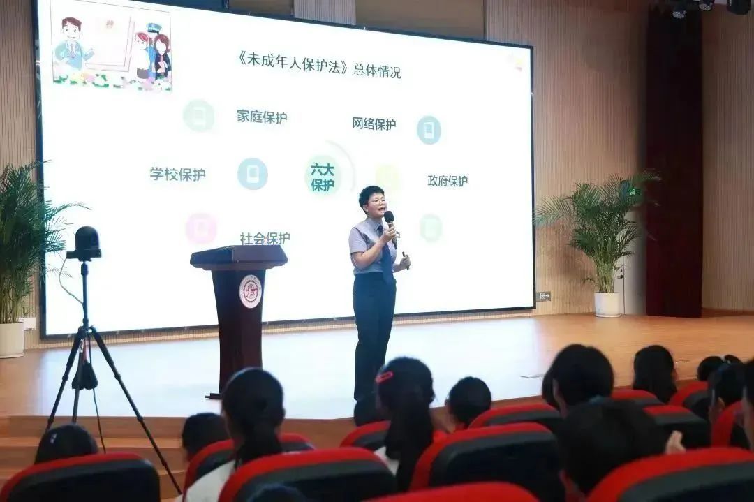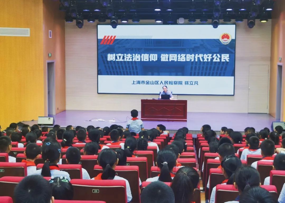 开学第一天,金山区检察院“金港湾”未成年人检察办案团队检察官助理蒋立凡赴金山区山阳小学,为同学们开讲“开学第一课”法治讲座。