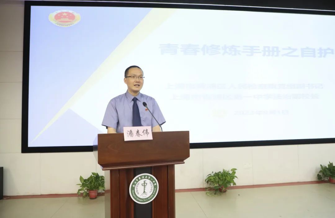 9月1日上午,青浦区检察院党组副书记潘春伟从青浦第一中学校长陆飞军手中接过聘书,以法治副校长身份走进青浦一中,为300余名师生带来一堂别开生面的“开学第一课”。