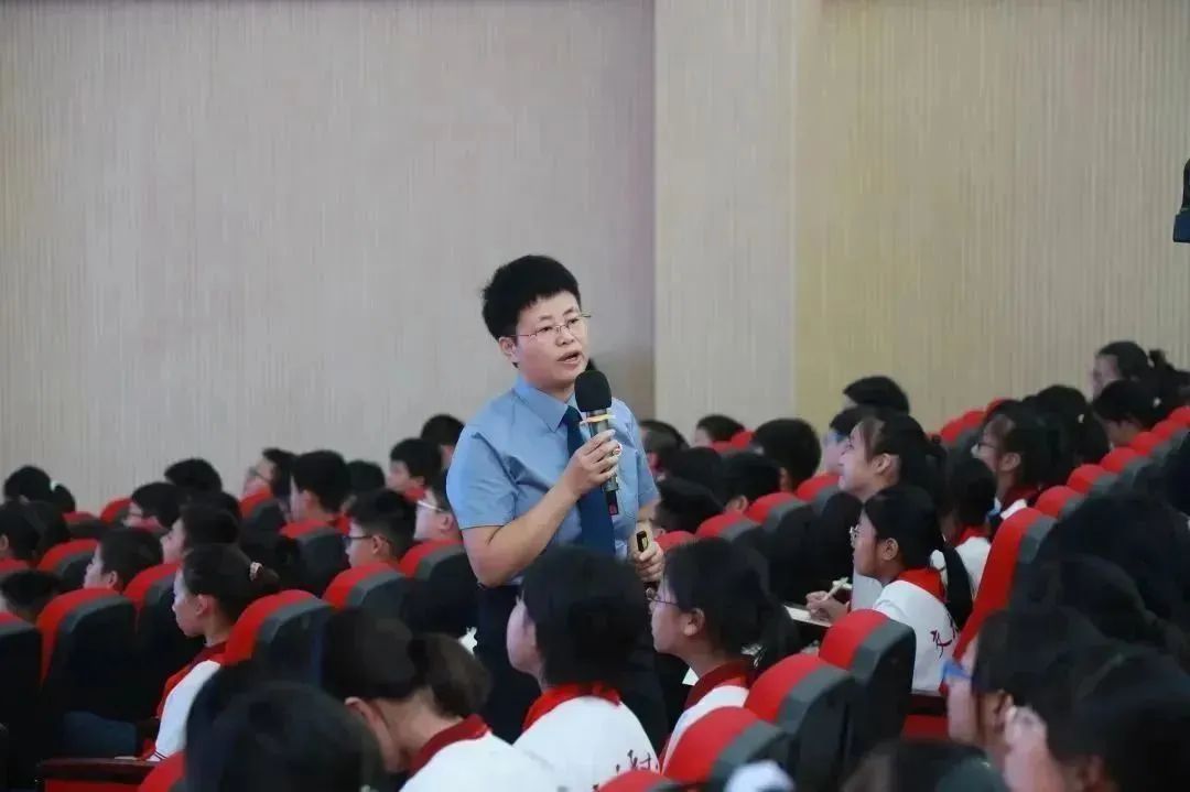 “同学们,人们常说,‘学好数理化,走遍天下都不怕!’我要加上一句,尊法、学法、守法、用法,才能走遍天下!希望你们志存高远,好学力行,尽情绽放青春风采!”法治副校长董学华的拳拳话语寄托了对同学们未来的美好祝愿。