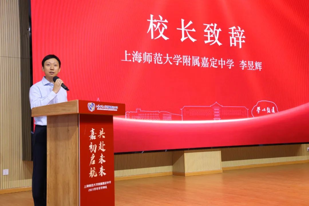 在开学典礼上,李昱辉校长说到:“我们要办一所有未来的学校,要致力于把美好未来带到学生面前。”李校长提出学校将坚持推进有高度、有深度、有宽度、有温度的发展,将迅速培养一批优秀教师、打造一批课程名片、形成一批富有特色的课后服务。据介绍,学校以“嘉教育”为办学理念构建文化体系,秉持“日迈月征,学以致道”的校训、“致恒、尚美”的校风,发扬“立德、增慧”的教风,倡导“崇真、探趣”的学风,引领、赋能、呵护、支持、激励每一个孩子的健康成长,全力提升每一个孩子的核心素养,实现 “给予每一个孩子通向美好未来的力量”的育人愿景。首次开学典礼,学校更是邀请到了83岁高龄的上海师大杨德广老校长在剧场为全体师生讲授“开学第一课”。进一步彰显了学校基于嘉定的悠久历史文化,依托上海师大的特色教师教育,提出的目标和宗旨:让教育和人生在嘉定这片土地上迸发无比高亢的共鸣。