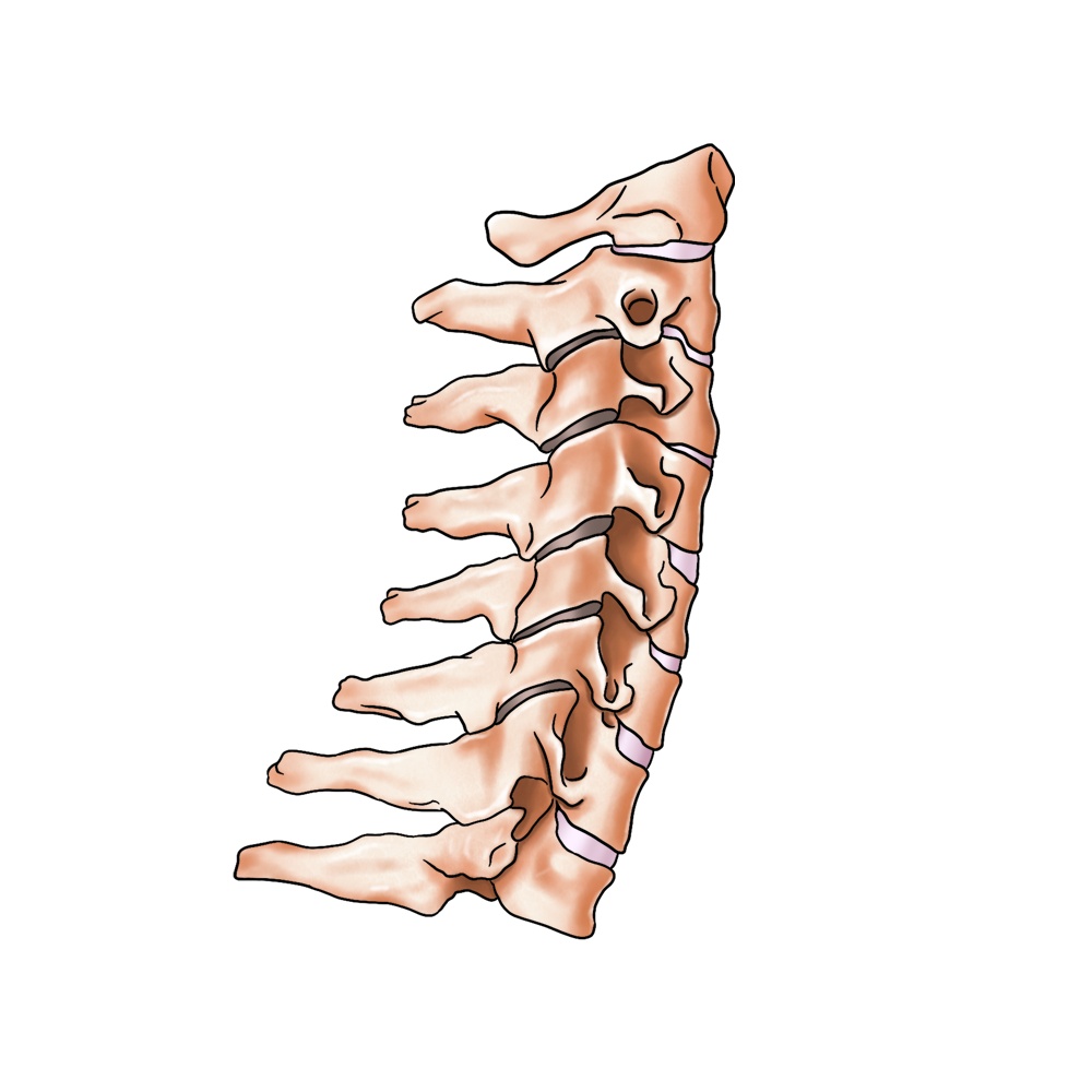 正常的颈椎,颈椎骨共七块,正常脊柱各段因人体生理需要,均有一定的弯曲弧度,称为生理曲度。我们的颈椎则形成稍向前凸的生理曲度,因此颈椎不仅支撑着头部的重量,还有很大的活动范围。