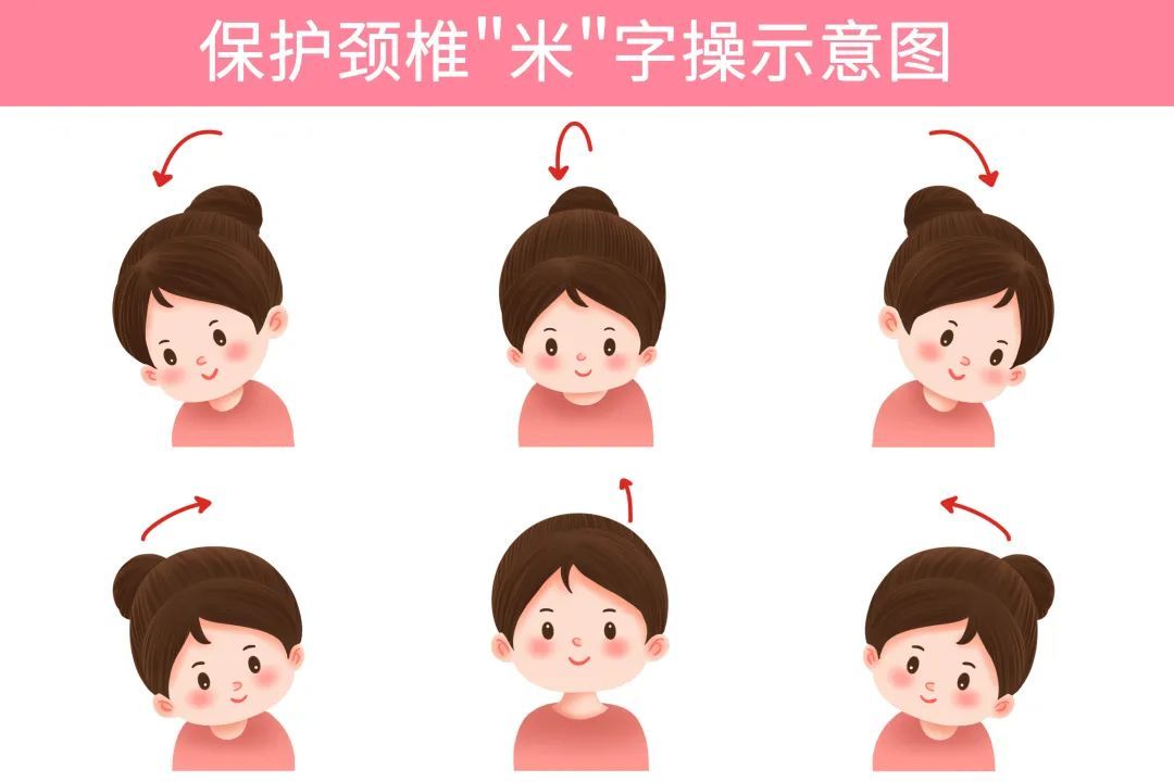 1) 米字操:颈部前后左右缓慢地活动,使肌肉得到舒展