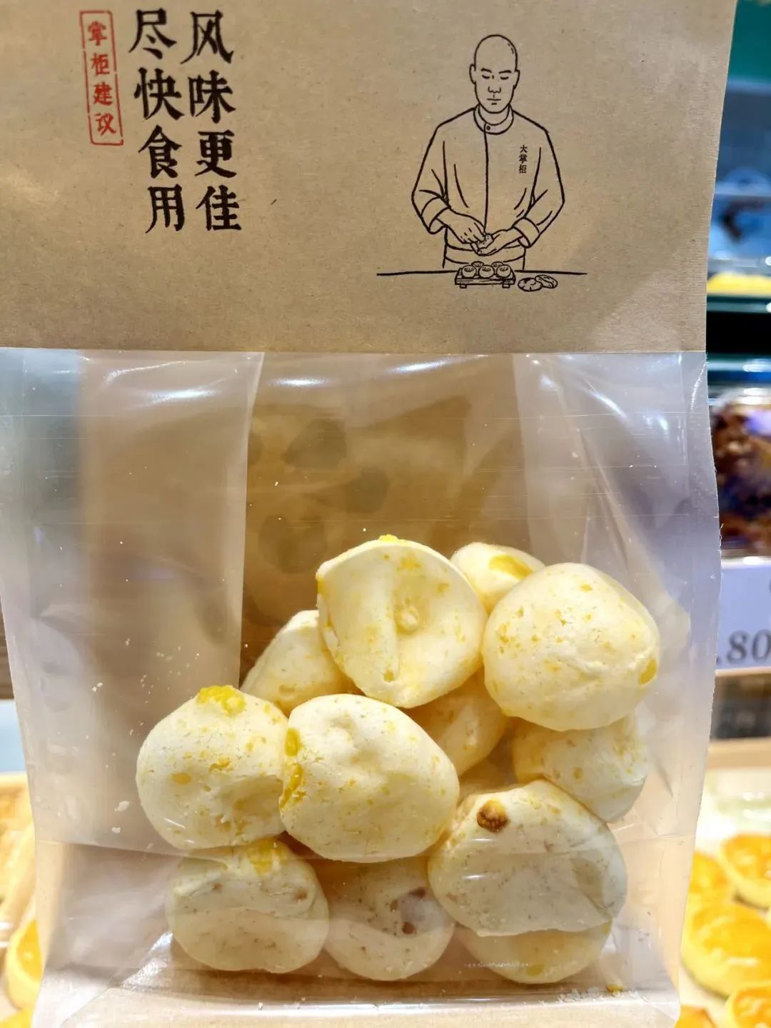 超级抢手的蛋黄芝士麻薯,经常卖断货,每一颗麻薯都是手工制作,表皮脆韧不塌,内里Q弹软糯。