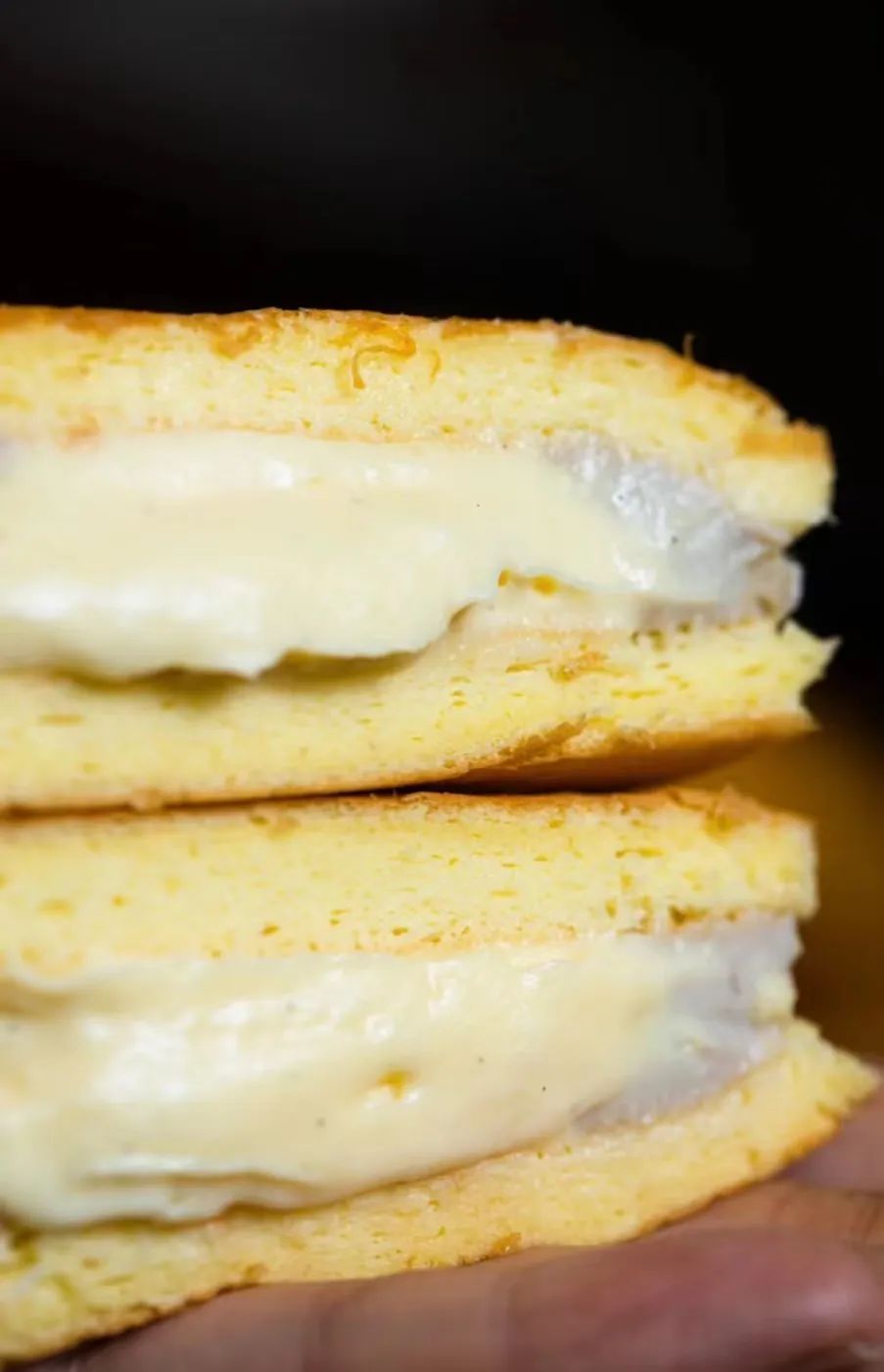 宛如一个圆形脑袋的铜锣烧,外皮松软有浓浓的蛋香味,麻薯芋泥量很足,细腻与甘润在舌尖旋转,软糯的口感一整个被拿捏住了!