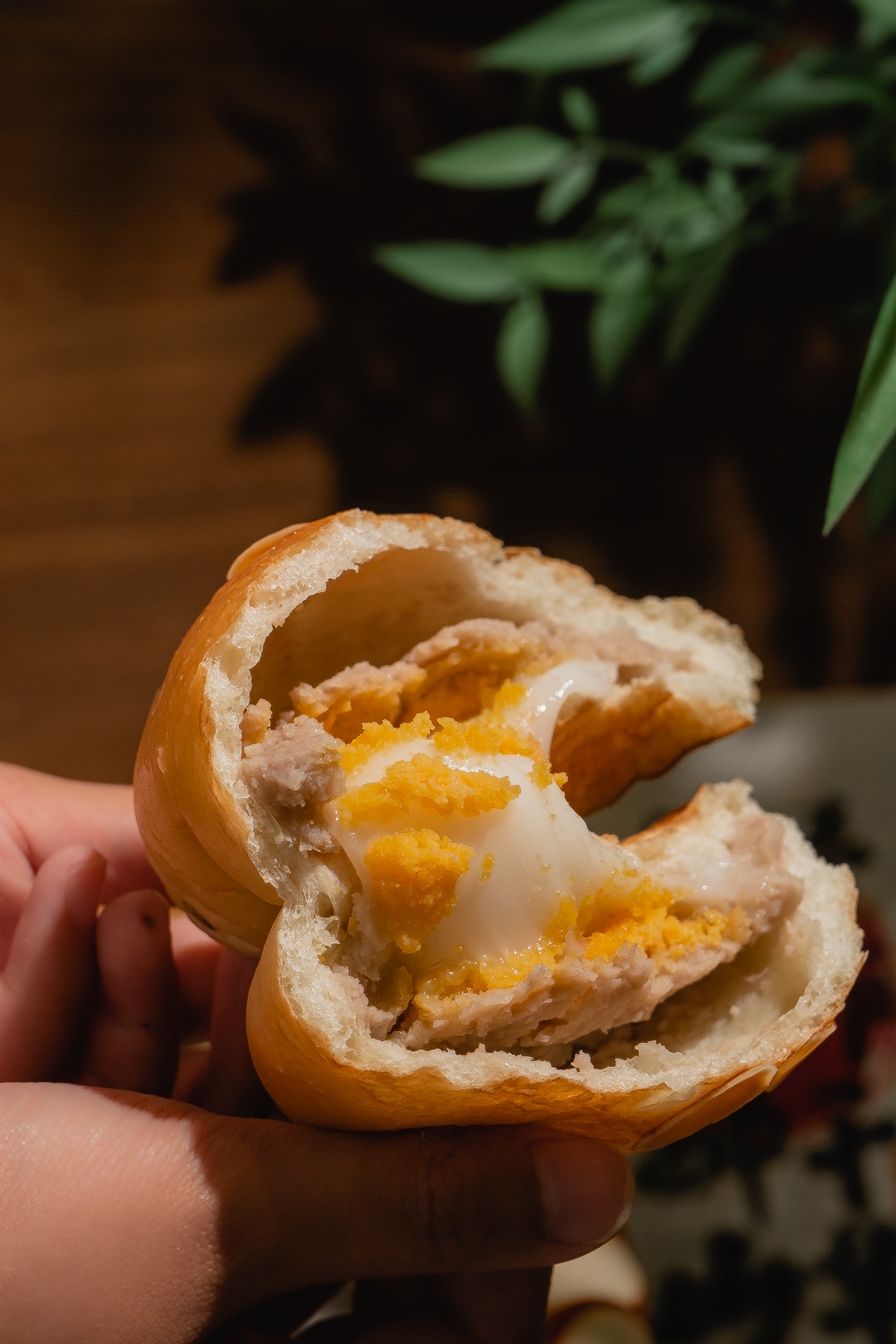 咸香的金沙蛋黄融入芝士包裹在其中,浓香馥郁,一口一个,别提多带劲了~