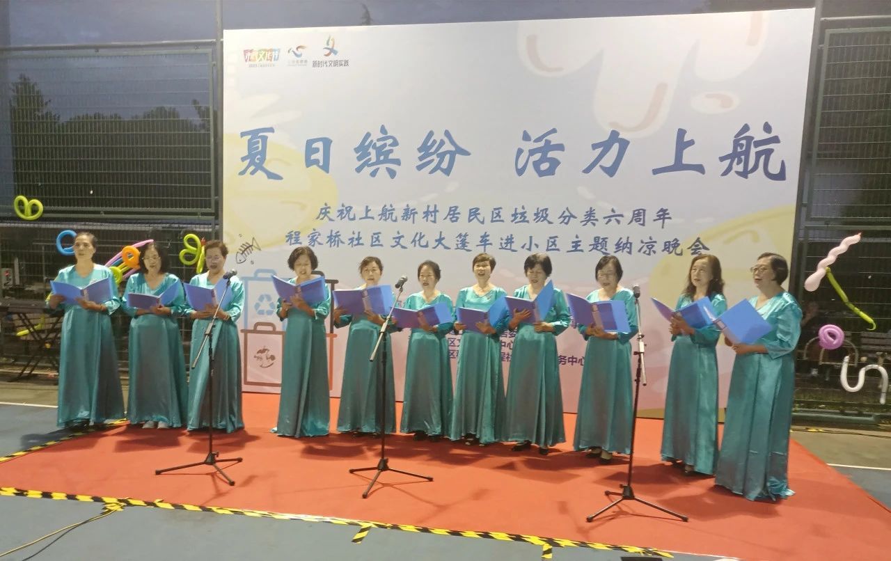 “家门口就能听到高水准的演唱,赞啊。”在台下居民们的掌声中,一首来自上航新村居民区文化志愿者团队优雅动听的女声合唱《画你》直接将文艺演出的氛围感拉上去,每一个旋律都体现着她们对小区的热爱。