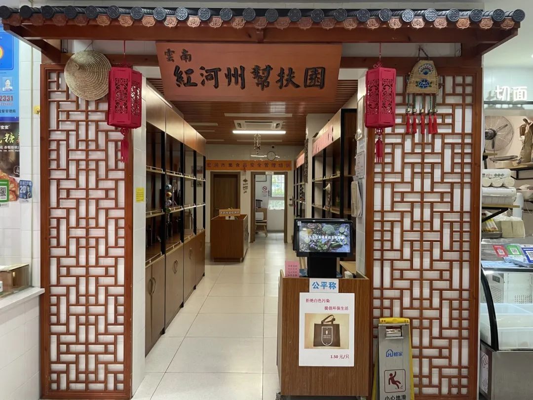 市集内一个特殊的门匾吸引了我的注意:云南红河州帮扶园。它是先前宏润社区市集改造的重头戏,旨在切实贯彻落实产业扶贫,促进当地经济发展,并让更多云南特色产品惠及民众。