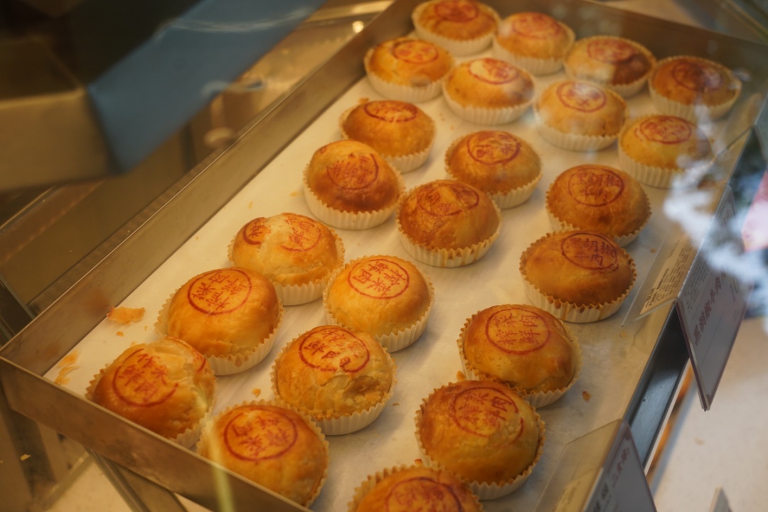 相较于上海本地热销的苏式月饼,沪上老字号“老香斋”“杏花楼”“功德林”等主打广式月饼。包装更精美、口味更丰富,有生椰拿铁味、奶黄流心味、桃山皮口味等,更受年轻人的喜爱。