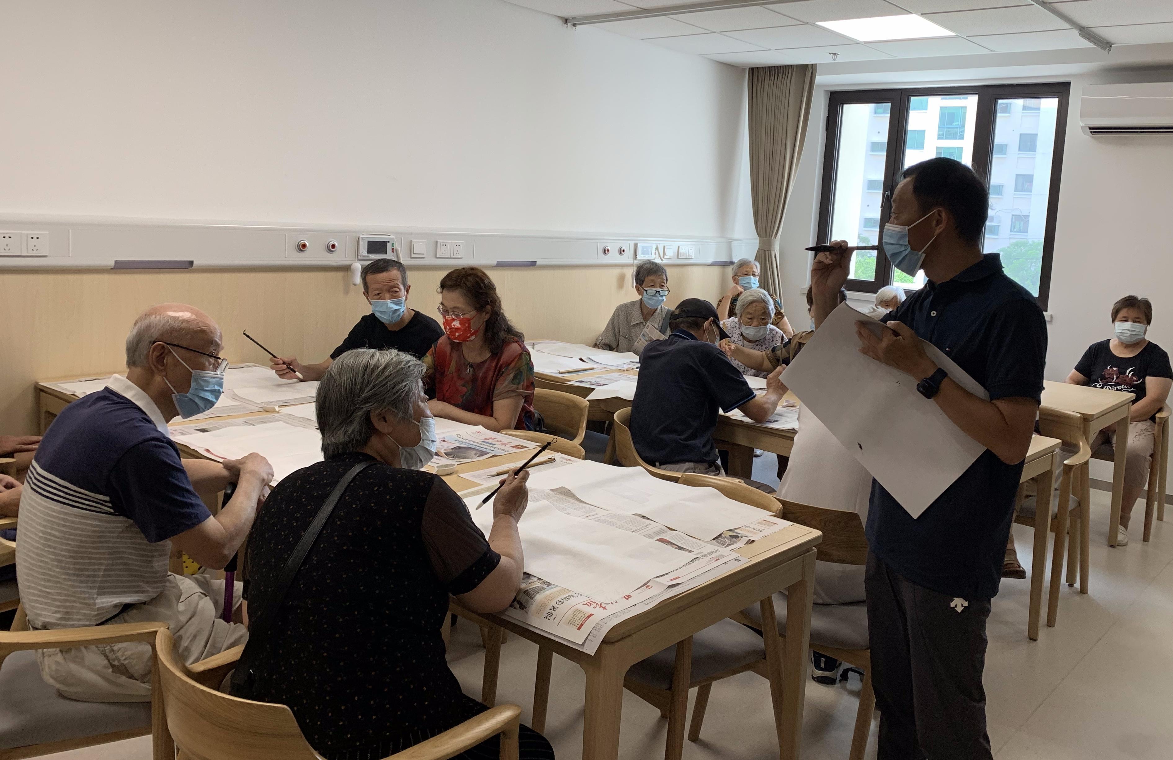 当天,养护院特别安排了一堂书法课,让参观者体验与住养老人“同款”的日常活动,更加深入地理解养护院对于长者身心健康的关注和重视。他们在书画室里挥毫泼墨,阅览室里沉浸书香,亲子活动室里共享天伦。参观者纷纷喜笑颜开:“这里既能动手,又能锻炼大脑,是老年生活非常不错的选择。”
