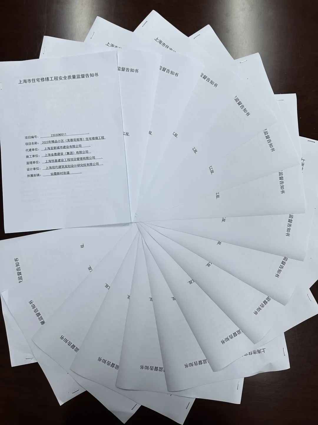 会上,区修缮中心根据上海市住宅修缮工程现场安全质量监督工作相关规定,介绍了负责本项目安全质量监督人员情况,并向本项目的各参建单位及市民监督员发放了《监督告知书》,明确了住宅修缮工程安全质量监督工作参建各方的安全质量责任及义务:建设参与各方在工程建设中应当尽量避免或减少对周边的不利影响,采取有效防护措施,确保居民安全;参建各方应当将涉及工程质量、安全、技术、经营行为等资料常备现场,以备住宅修缮工程监督管理检查;参建各方应当对其报送住宅修缮工程监督管理的材料真实性、有效性负责;施工总承包单位应对施工现场的安全生产负总责,做好分包单位的管理和组织协调工作,同时分包单位应当服从总承包单位的管理,对施工范围内的安全生产负责。本次会议的召开,也标志着该标段修缮工程正式进场开工。