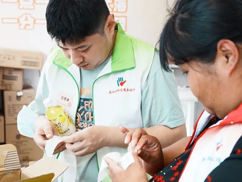桃浦镇慈善超市始终遵循“公益为民,慈善帮困”的服务理念,日常开展慈善帮困、义卖、云南农产品助农销售、志愿服务等社会慈善活动,实现残疾人站内就业,并为残疾人、志愿者、70岁以上老人、三孩家庭、困境家庭等特殊群体提供专享折扣,共让利数万元。此外,创造性地打造集慈善售卖、便民共享等多功能于一体的“靠谱小店”,不断拓展慈善超市影响力。