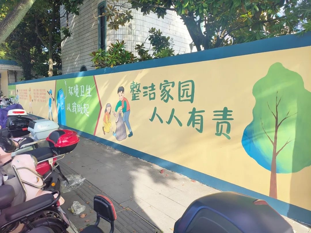 除此之外,“美丽街区”建设工作还包括对道路两侧围栏旁杂草进行清除,种植爬藤类景观植被;对老旧破损卷帘门进行统一翻新及更换等。