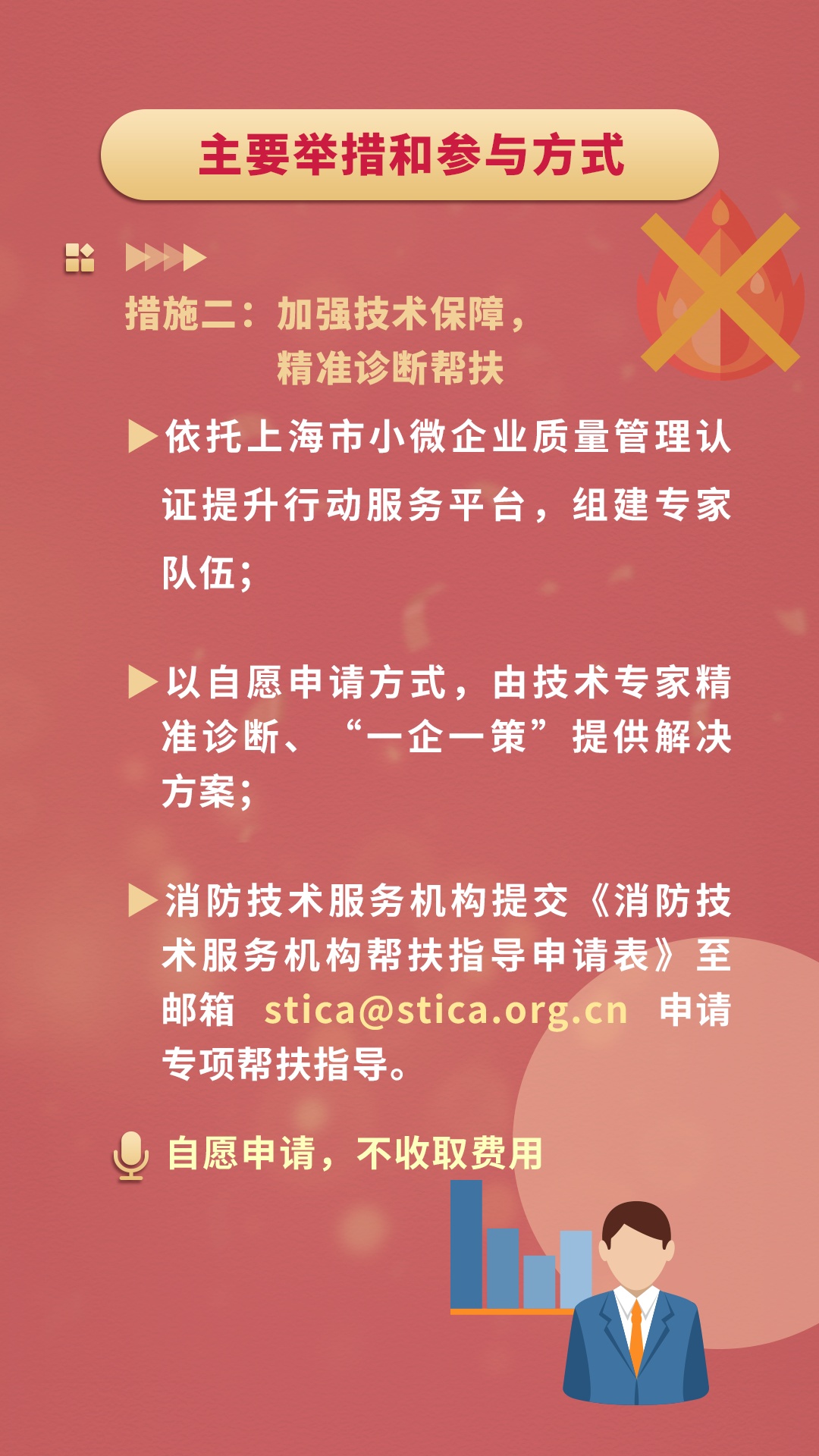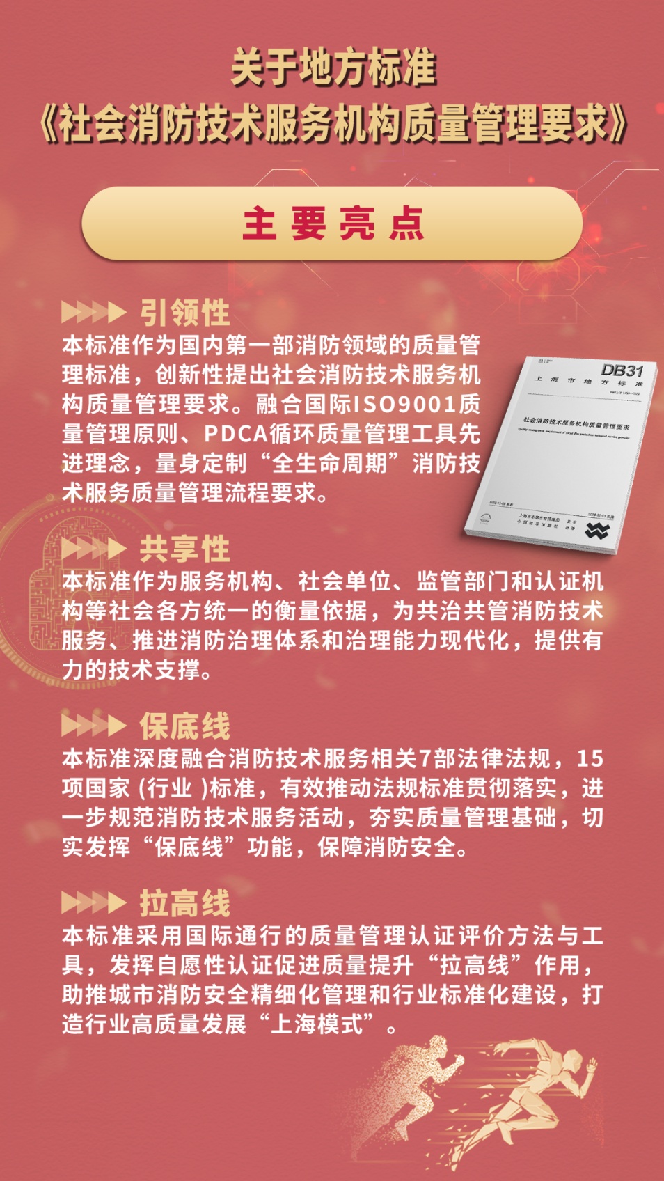 为推动消防技术服务行业高质量发展,上海市市场监督管理局会同上海市消防救援总队联合开展消防技术服务行业质量管理体系认证提升行动,通过机构责任落实、部门帮扶指导、社会多方参与,以定制标准、宣贯培训、“一企一策”精准帮扶为举措,全力构建行业高质量发展“上海模式”。