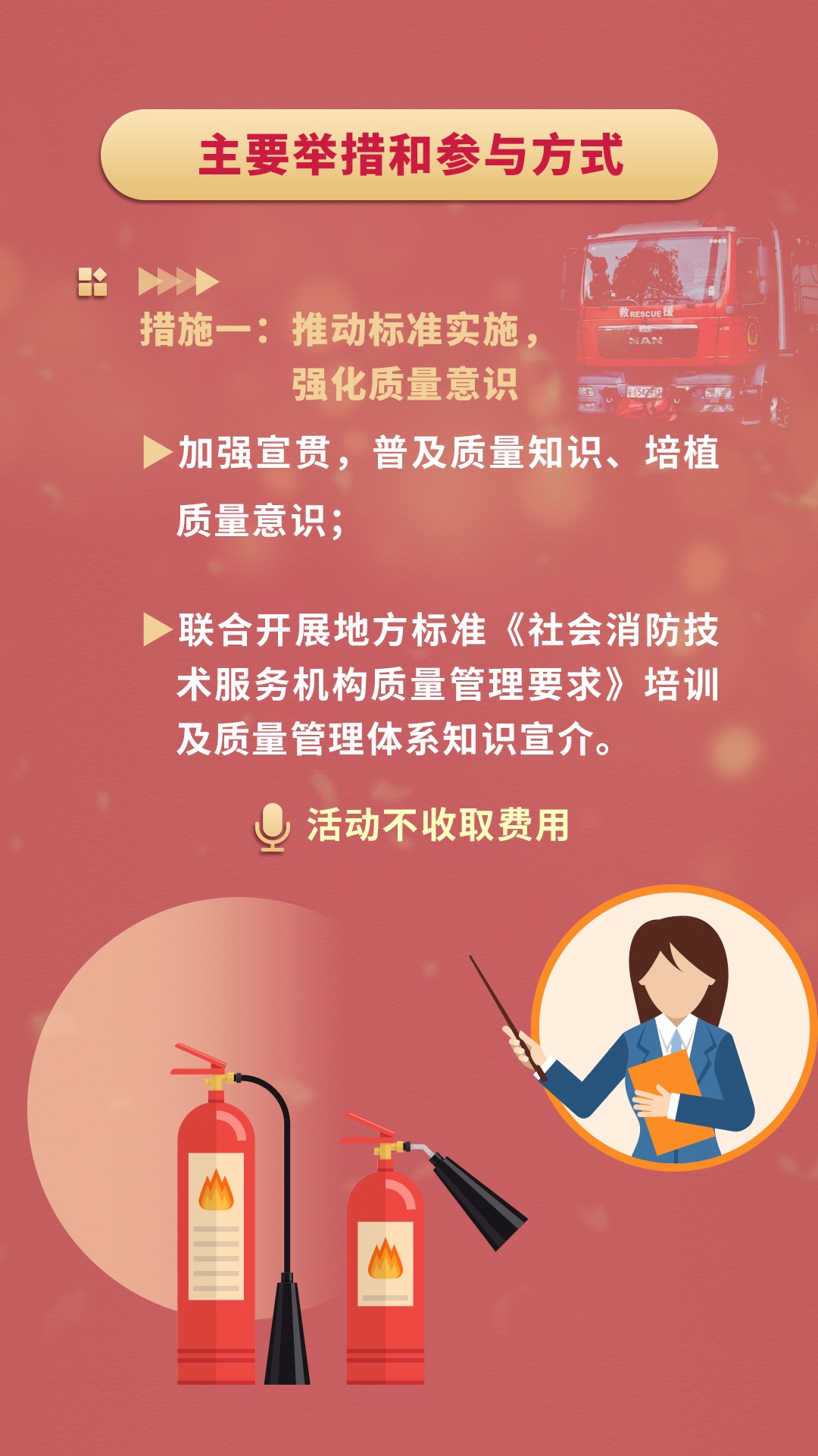 本次提升行动还将评选一批优良实践案列,打造一批特色鲜明的消防技术服务行业质量提升示范标杆,形成一批具有市场竞争力、影响力的消防技术服务品牌!
