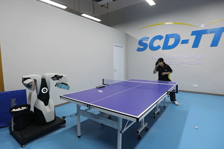 在天王星乒乓馆可以和智能机器人切磋乒乓球技术,作为上海最智能的乒乓球场之一,这里配有一台手臂式的发球机器人,还有多台乒乓球发球机。