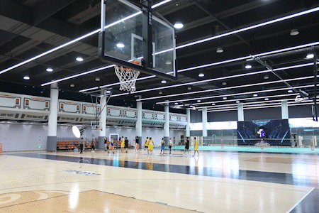 火星篮羽中心包含篮球场和羽毛球场,场馆最边上的一块区域平时作为羽毛球场地,场地上的地胶拿掉之后又能作为篮球场使用。