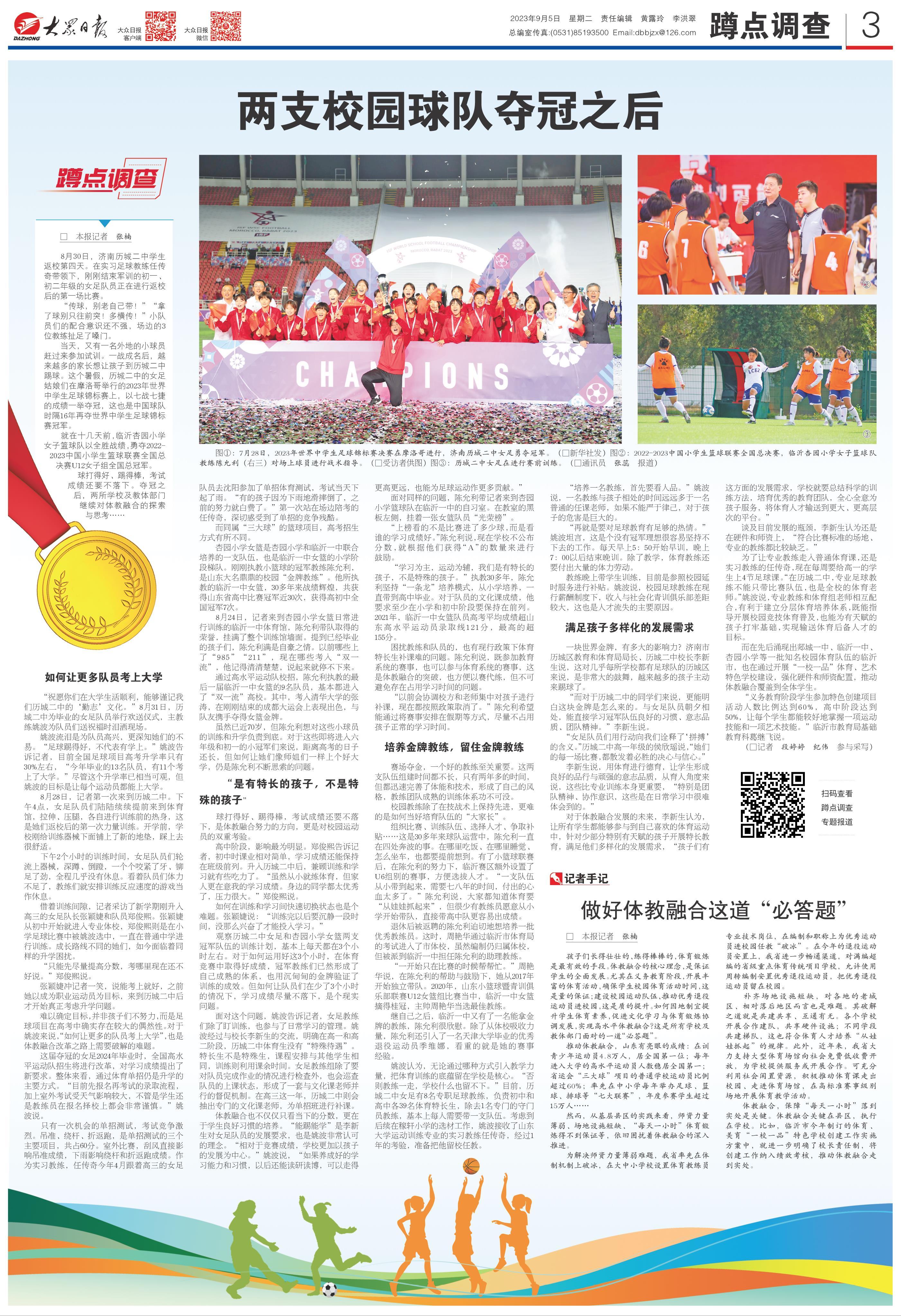 “祝愿你们在大学生活顺利,能够谨记我们历城二中的‘勤志’文化。”8月31日,历城二中为毕业的女足队员举行欢送仪式,主教练姚波为队员们送祝福时泪洒现场。