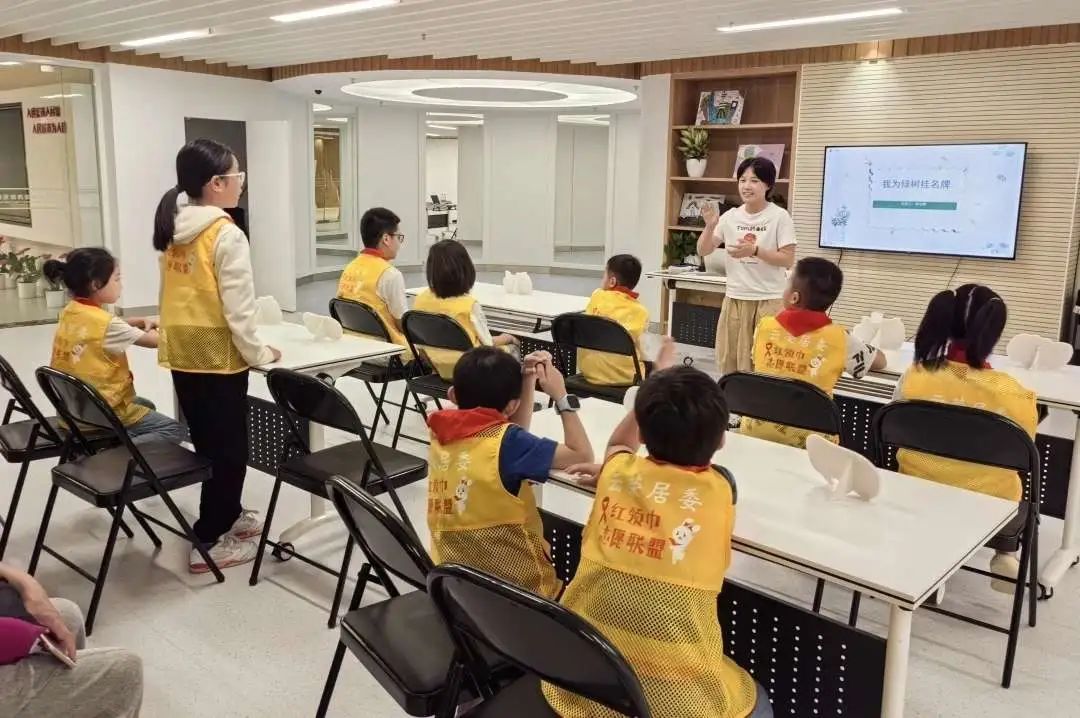 在日前云荣居民区开展的“落实林长制,共建绿色家园”主题活动中,社区内的中小学生组成了大宁路街道第一支红领巾护林队。