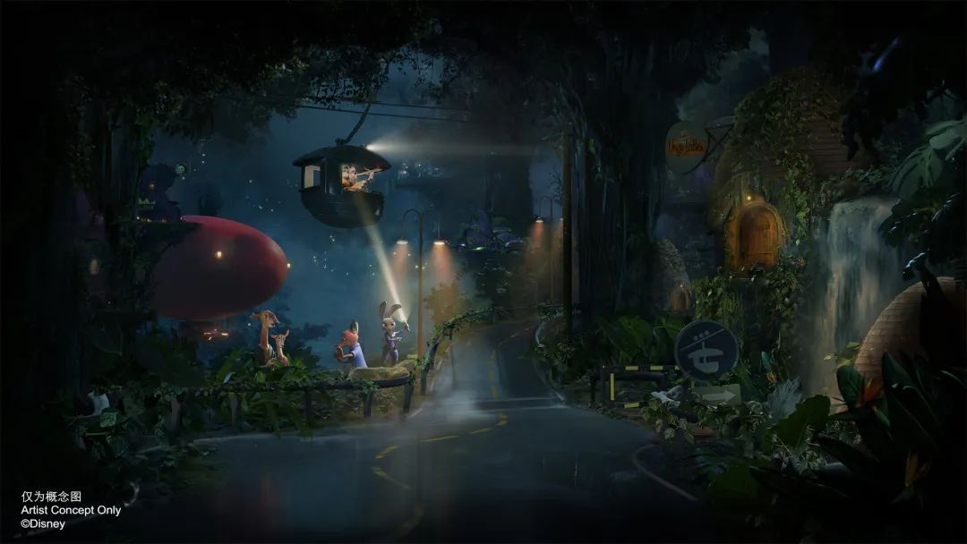 “疯狂动物城:热力追踪”中的主要场景之一——雨林跑道的概念图
