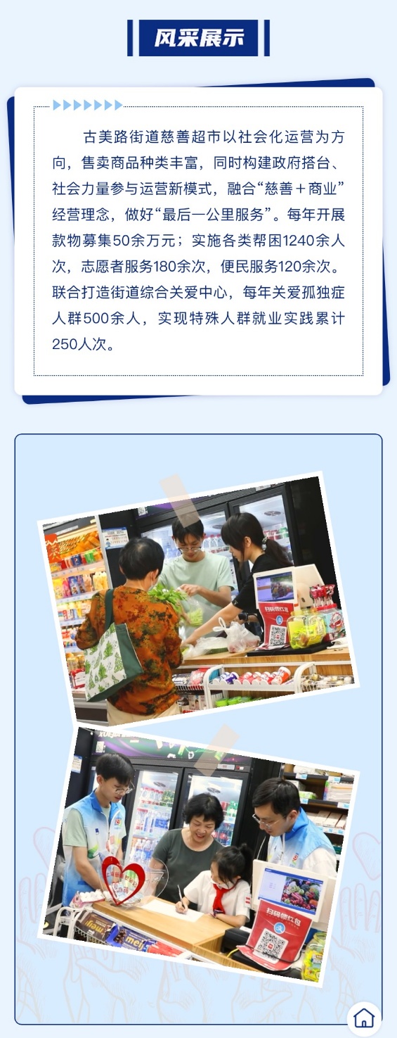 为进一步推动本市慈善超市创新发展,夯实社区慈善事业发展的基础平台,彰显“家门口慈善品牌”价值,上海市民政局在今年“上海慈善周”期间开展上海“最爱·慈善超市”宣传展示活动。经过选拔推荐,全市共有42家慈善超市参与市民点赞活动,其中,闵行有3家,分别为古美路街道慈善超市、梅陇镇慈善超市、莘庄镇慈善超市。