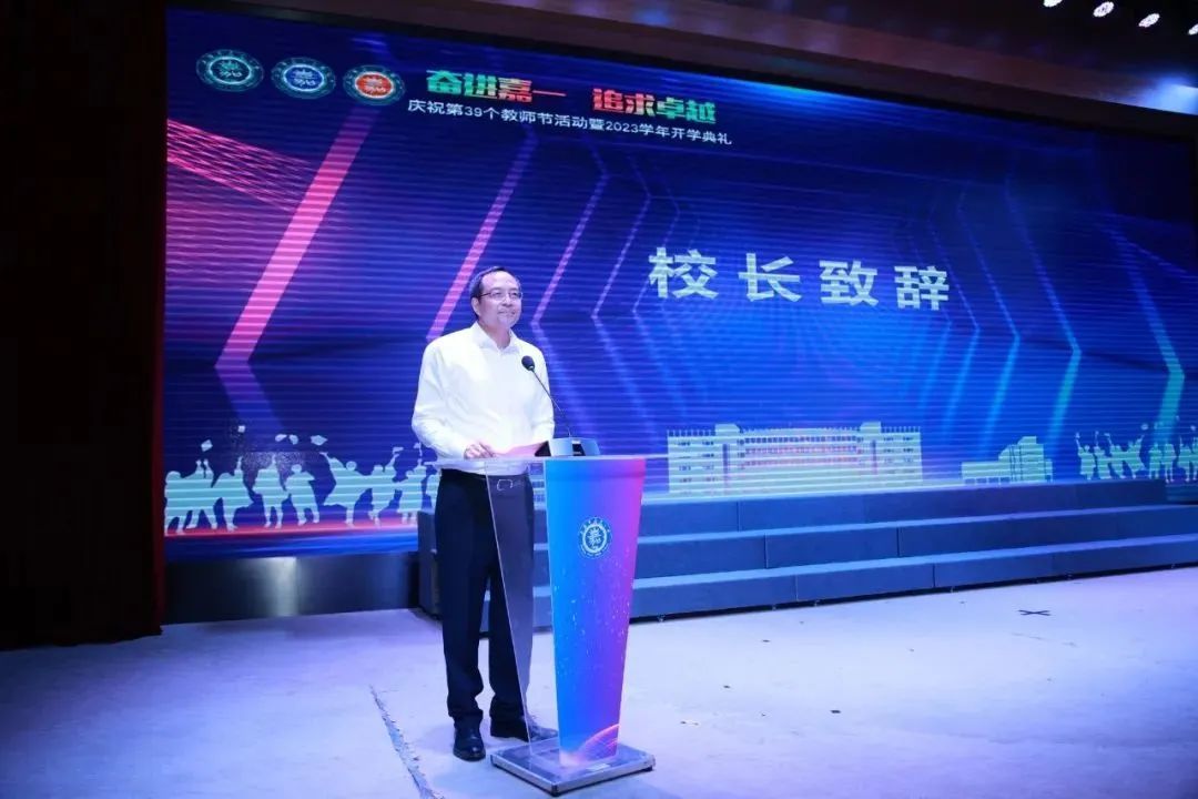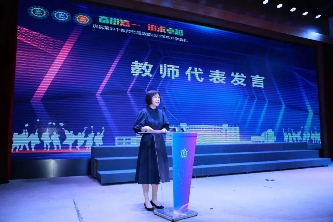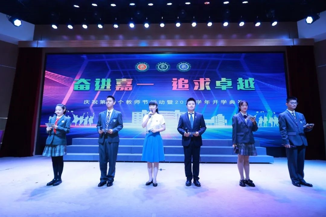 9月5日,上海市嘉定区第一中学及嘉一实验系学校庆祝第39个教师节活动暨2023学年开学典礼举行。嘉定区教育局副局长李娟,嘉定区教育学院党总支书记、院长许晓芳,西上海(集团)有限公司董事长潘厚泉,嘉定区教育奖励基金会理事长张连龙,西上海天福慈善基金会副秘书长范丽敏,退休教师代表,家长代表,以及全体师生员工参与了此次活动。