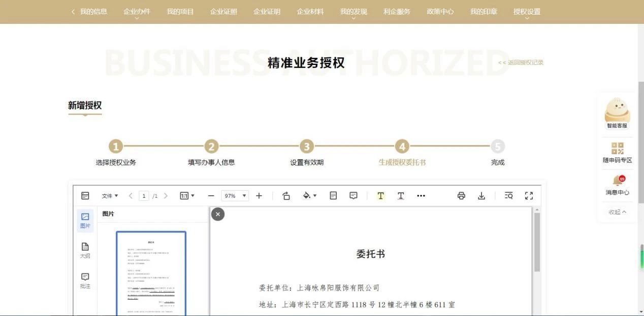 (4)生成授权委托书