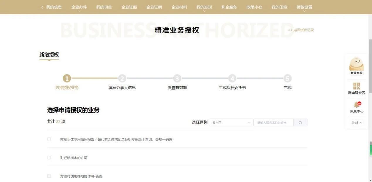 据了解,“一网通办”长宁区企业专属空间的“授权代办”服务升级后,真正实现了让数据“多跑路”,让群众“少跑腿”,不仅帮忘盖公章、漏带授权材料的企业办事人员解决面临的难题,也切实减少纸质授权书的开具和传递,让市民充分享受到“随申码”数字身份认证所带来的便捷。