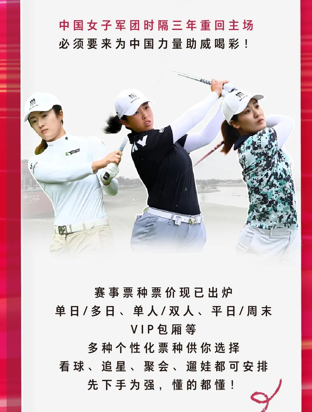 期待已久的巅峰对决即将打响经验更告诉我们:买票要趁早!三年等待,在此一“击”!图文:别克LPGA锦标赛