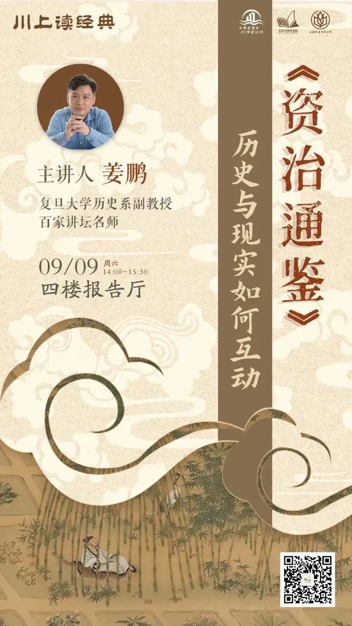 9月9日,复旦大学历史系副教授姜鹏将在大零号湾图书馆带来“《资治通鉴》:历史与现实如何互动”主题讲座。