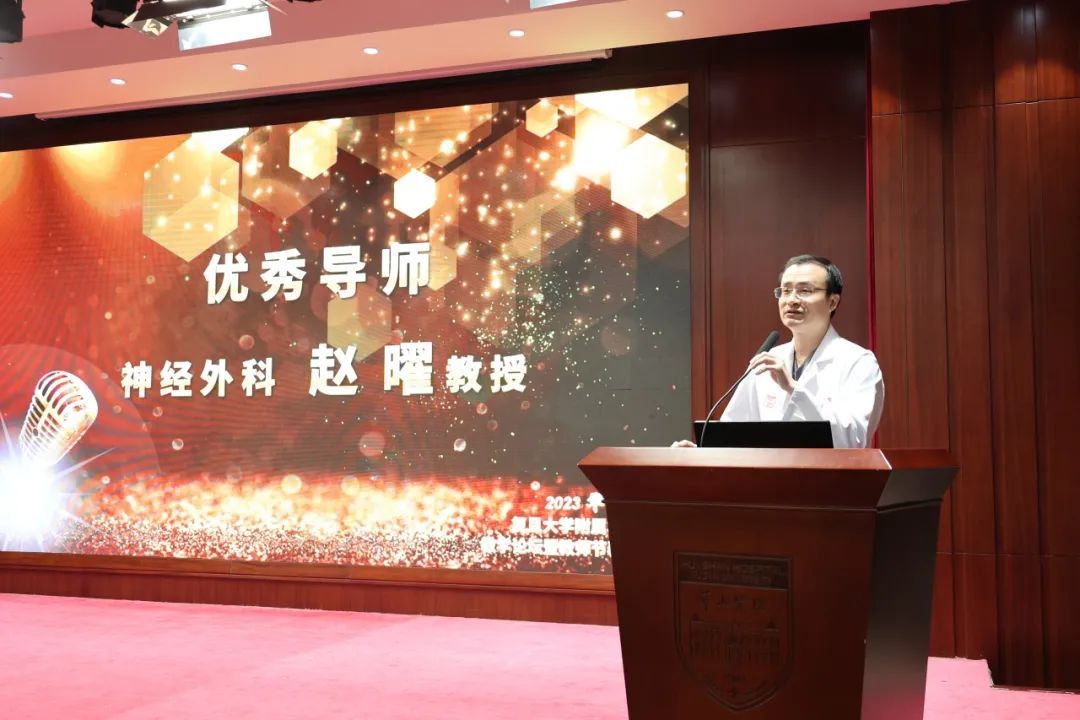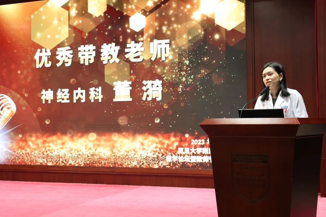 分别代表优秀导师、优秀教学主任、优秀带教老师、优秀学生及学生带教,神经外科赵曜教授、血液科王小钦教授、神经内科董漪副主任医师、外科基地陈希南先后发言,他们分享了自己在教学过程中与学生们的一幕幕难忘故事和教学感悟。