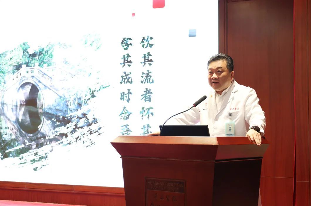 毛颖院长代表医院党政领导班子向全体华山师者致以节日的问候和衷心的感谢。“教学是将来,更是现在。”他指出,只有做好医学教育,医疗事业和科研水平才能水涨船高。教学更是贯穿了医学人才培养和成长的全过程,和学科建设、人才打造密不可分,是医院高质量发展的原动力,也是建设健康中国的历史使命。华山医院就是要长期坚持,做这些难做之事、这些不为名利而功在千秋的根本之事。前不久,宝山院区启用了新的医学模拟教育中心。未来,医院将实打实地拿出空间为华山临床医学院的实体化提供支撑。“风好正是扬帆时,不待扬鞭自奋蹄”,愿师生们在教学互长中收获丰富、精彩的人生!