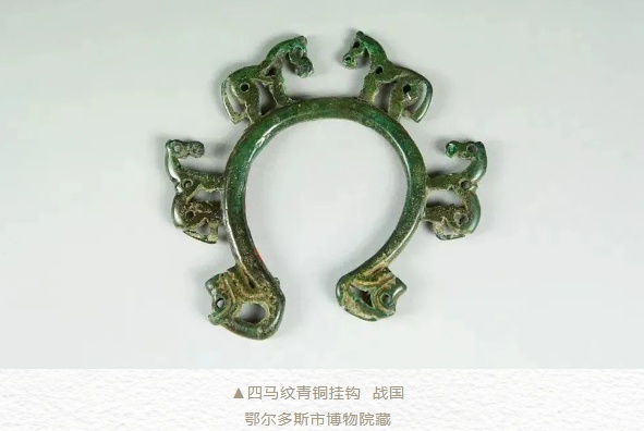 此次展览共展出300余件精美展品,其文物品类包括短剑、流星锤、鹤嘴斧等兵器,铜刀、铜鍑、铜锥等生产生活用具,当卢、马面饰、车辕饰等车马器,以及彰显早期北方游牧民族服饰特色的冠饰、项饰、腰带饰等。