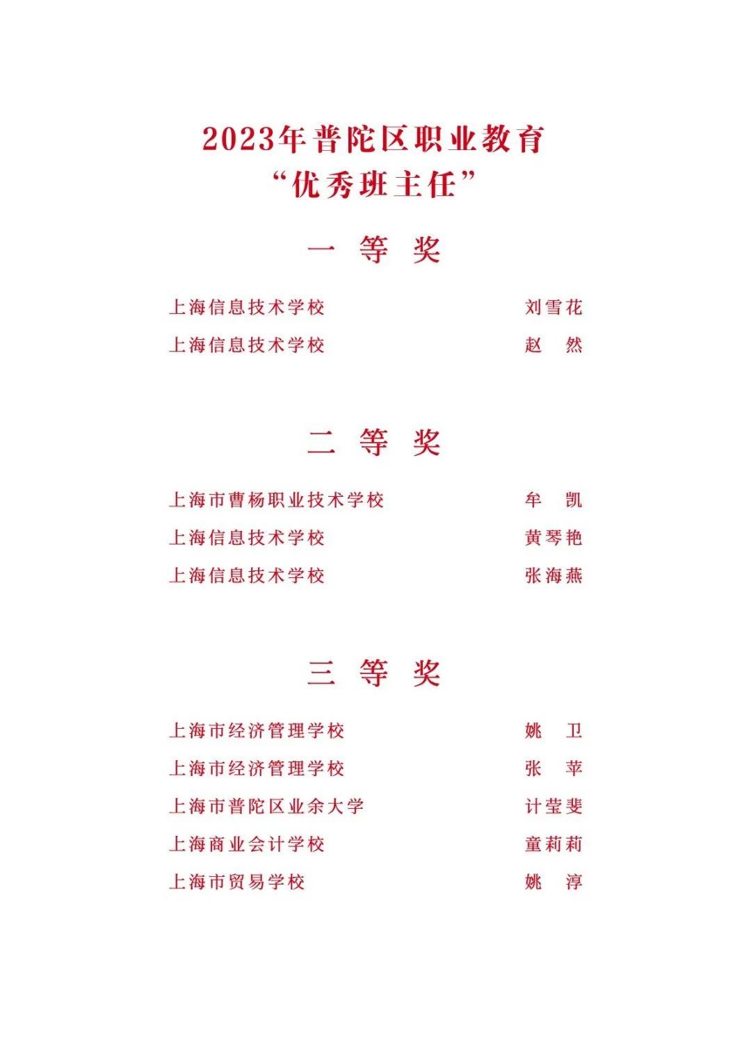 近日,普陀区教育系统举行“时代大先生 靠谱筑梦人”庆祝第39个教师节主题活动,现场表彰了2023年上海市教育功臣、2023年上海市教育功臣提名、2023年上海市特级教师、2022年上海市中小学正高级教师、区教育系统第八届“我心目中的好老师(十佳)”、2023年区职业教育“优秀班主任”代表等,快跟着小编一起来看看吧。